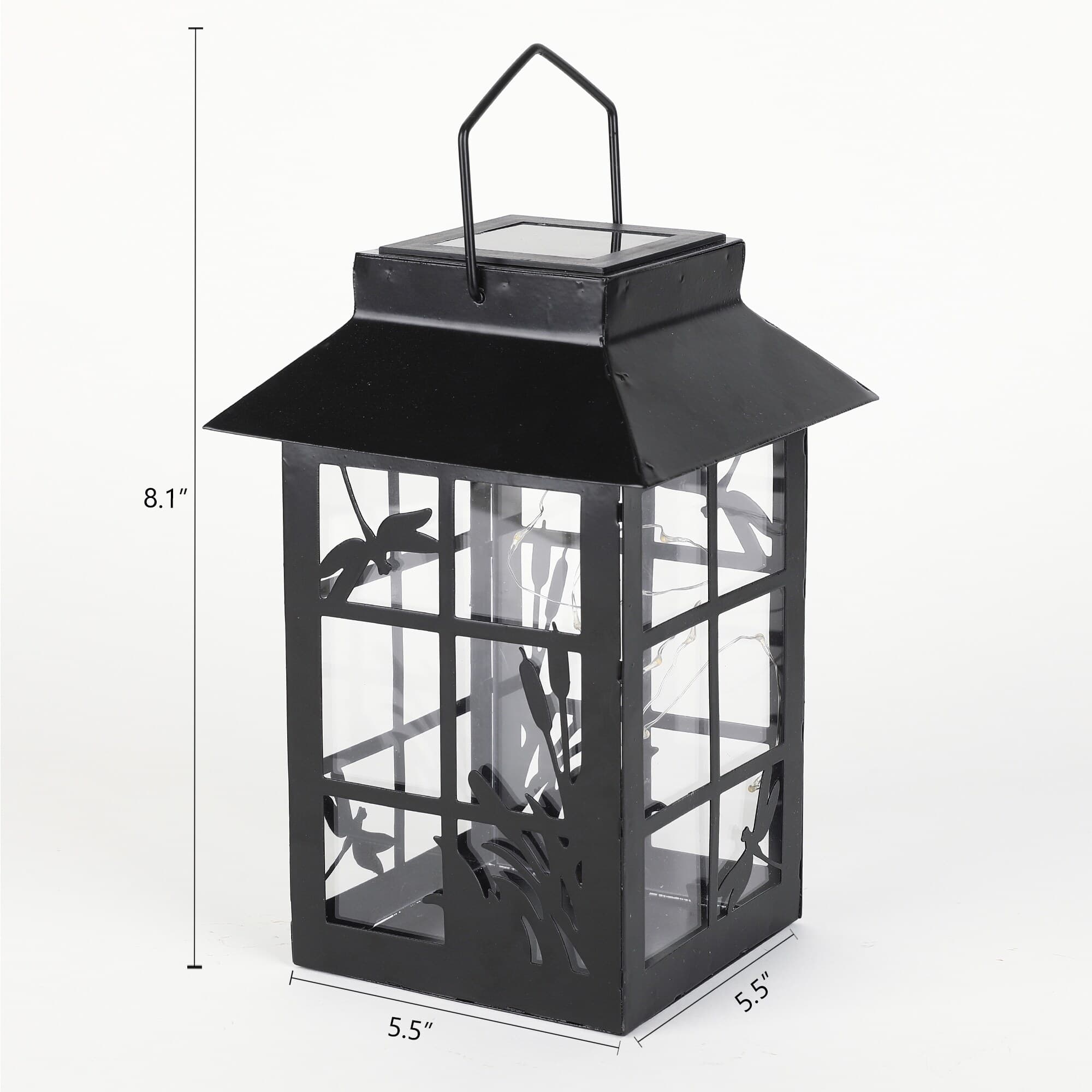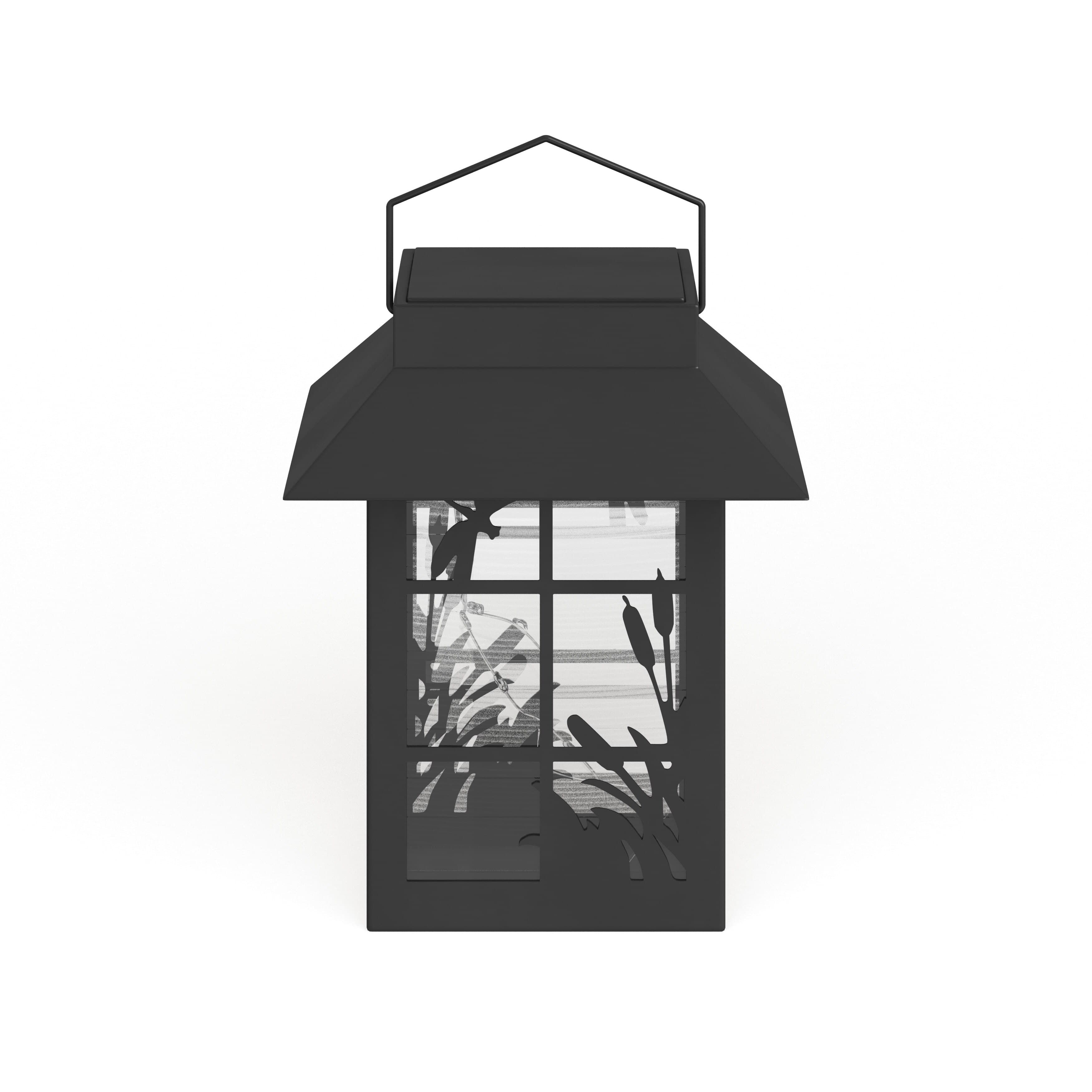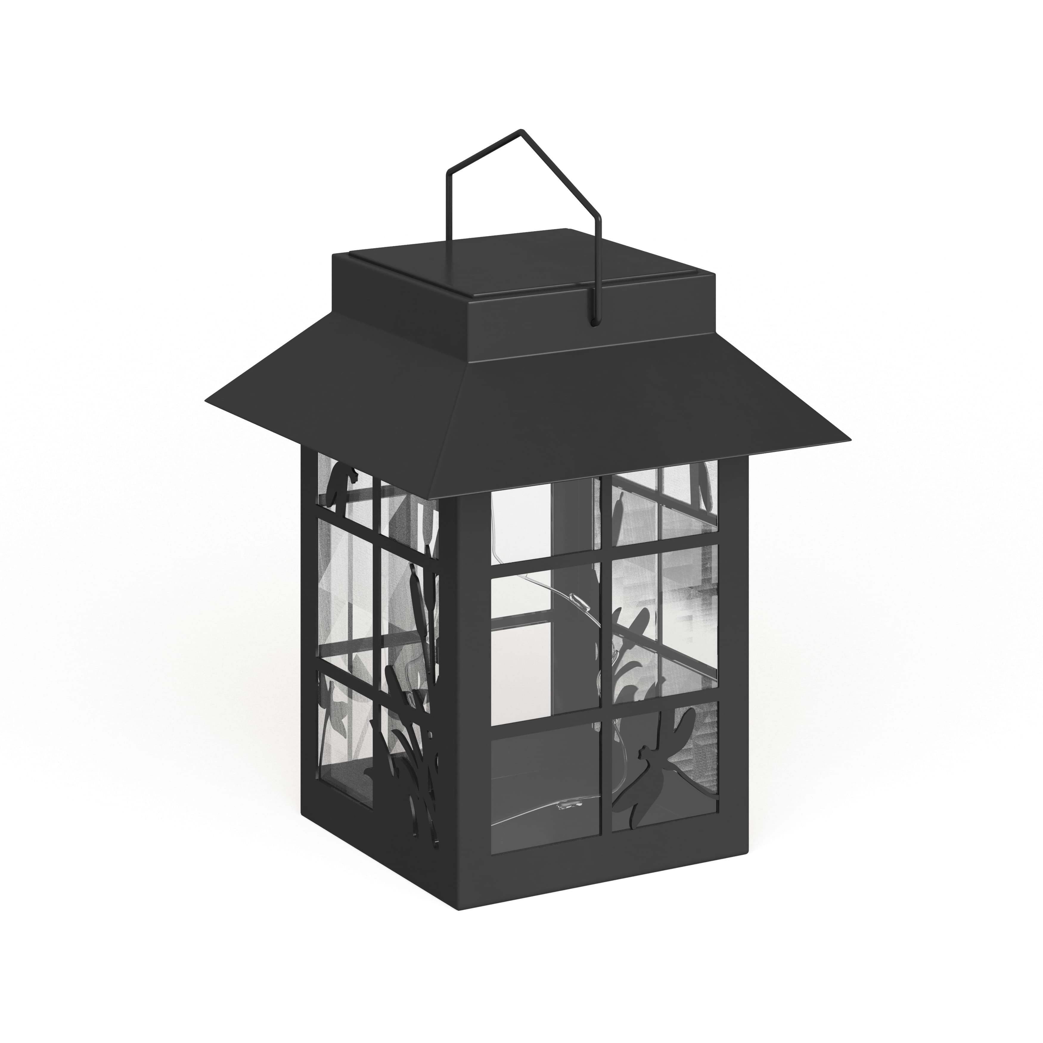 Light up your outdoor space with the Hudson 8.1-in Outdoor Solar Light Lantern by Havenside Home. With window frame style sides featuring dragonfly and cattail plant cut-outs, this lantern has a glossy black finish and plastic lens that give it a natural and elegant appearance. Powered by solar energy, this lantern is both eco-friendly and cost-efficient, making it the perfect addition to your pool area, deck, porch, or balcony. Simply charge it in full sun during the day, and let it automatically turn on at dusk for a warm ambiance without any extra work.