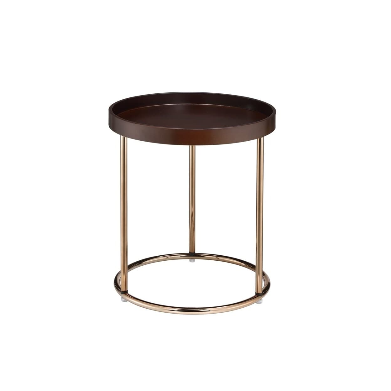 Enhance your interior's look with this side table, equipped with lipped edges to avoid items falling off. Made from a mix of solid wood, acrylic, and metal frame, it stands on tubular legs.