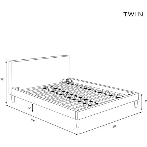 The bed features rounded headboard corners and conical wood legs for a modern look. Its padded headboard is perfect for reading or watching TV in bed, and linen upholstery offers a touch of elegance. With the included slat system, a box spring isn't necessary.