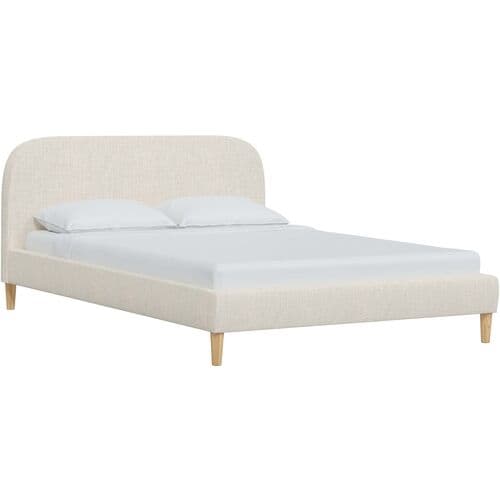 Featuring rounded headboard corners and stylish conical wood legs, this bed exudes contemporary charm. The plushly padded headboard is perfect for those who enjoy reading or watching TV in bed, while the linen upholstery enhances its plush appeal. A slat system is included, eliminating the need for a box spring.