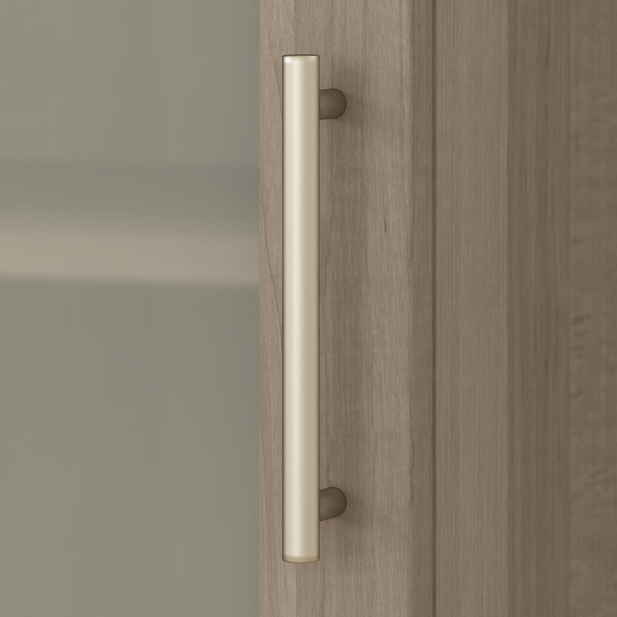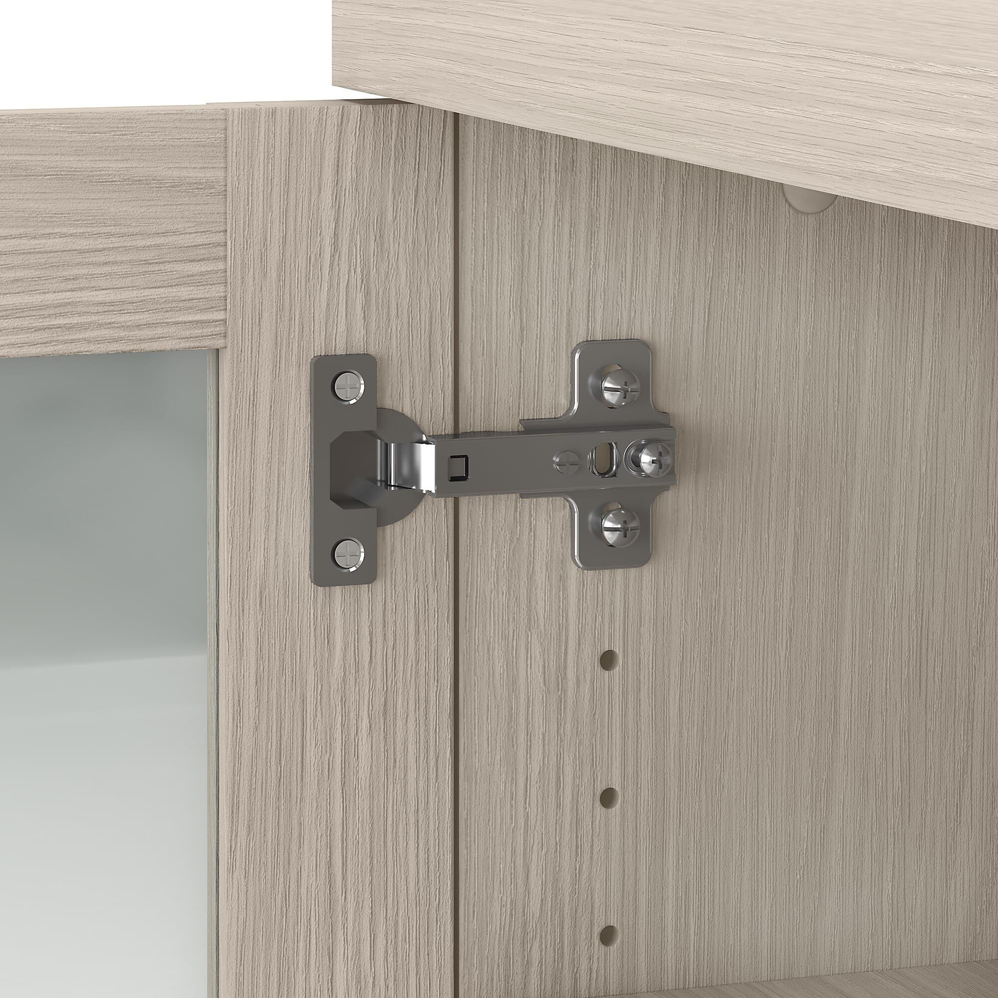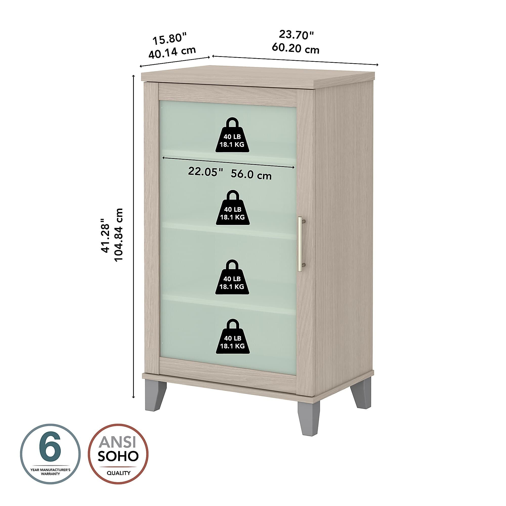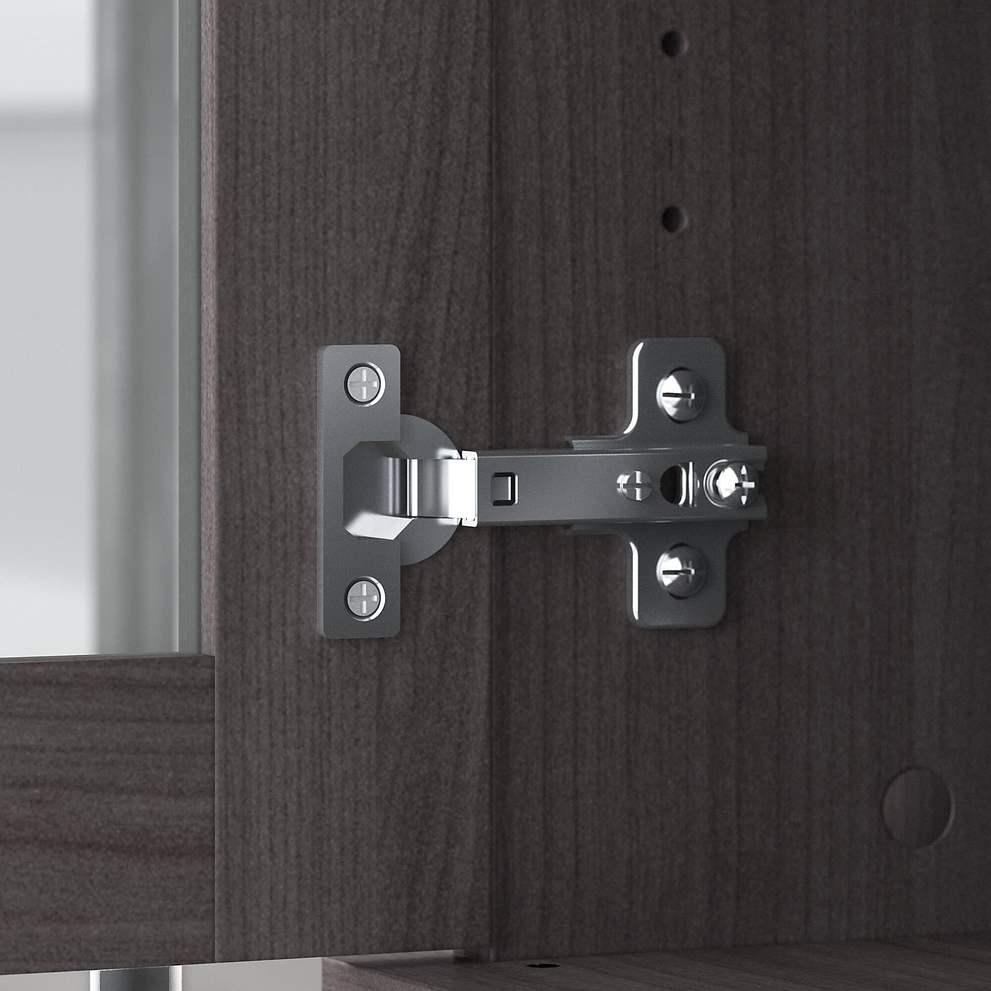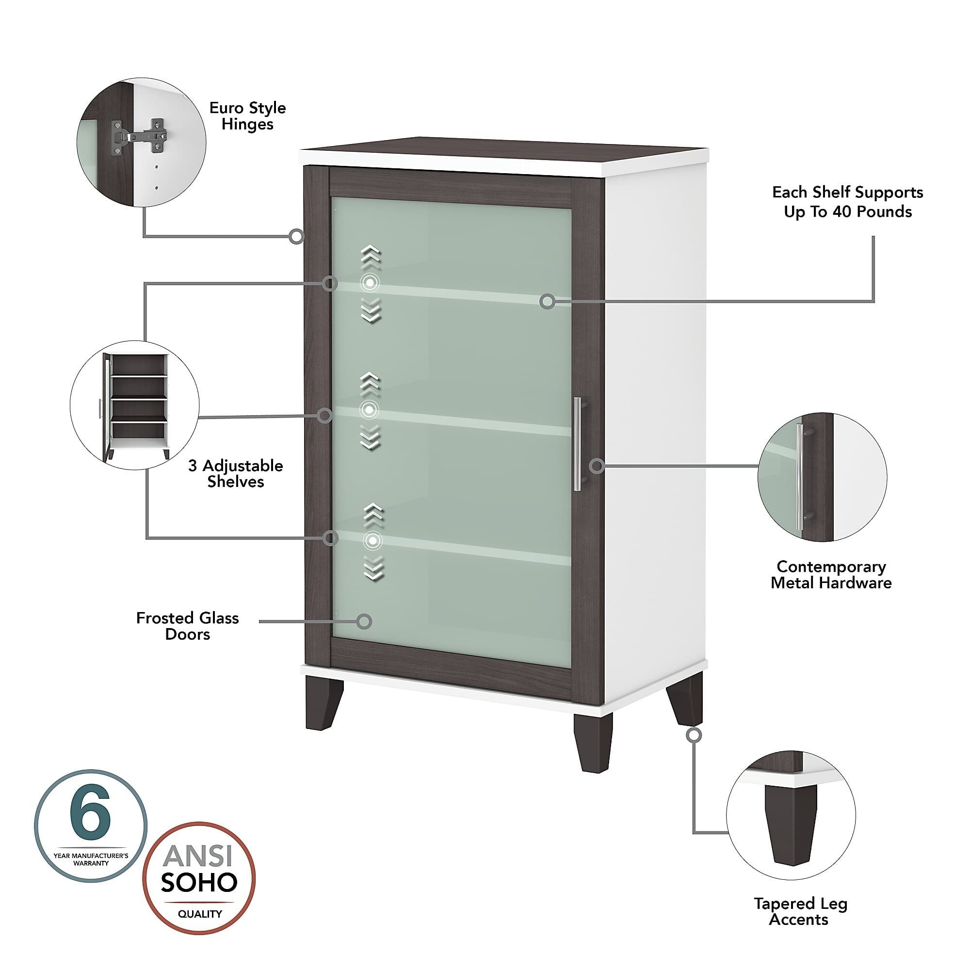 Enhance your living space with the mocha media cabinet. The frosted glass door, with its Euro-style hinges, reveals one fixed and three adjustable shelves. Each can support up to 40 pounds, making it ideal for holding a stereo, record player, DVD player, gaming console, and more. The back panel features cutouts for wire management, keeping cables organized.