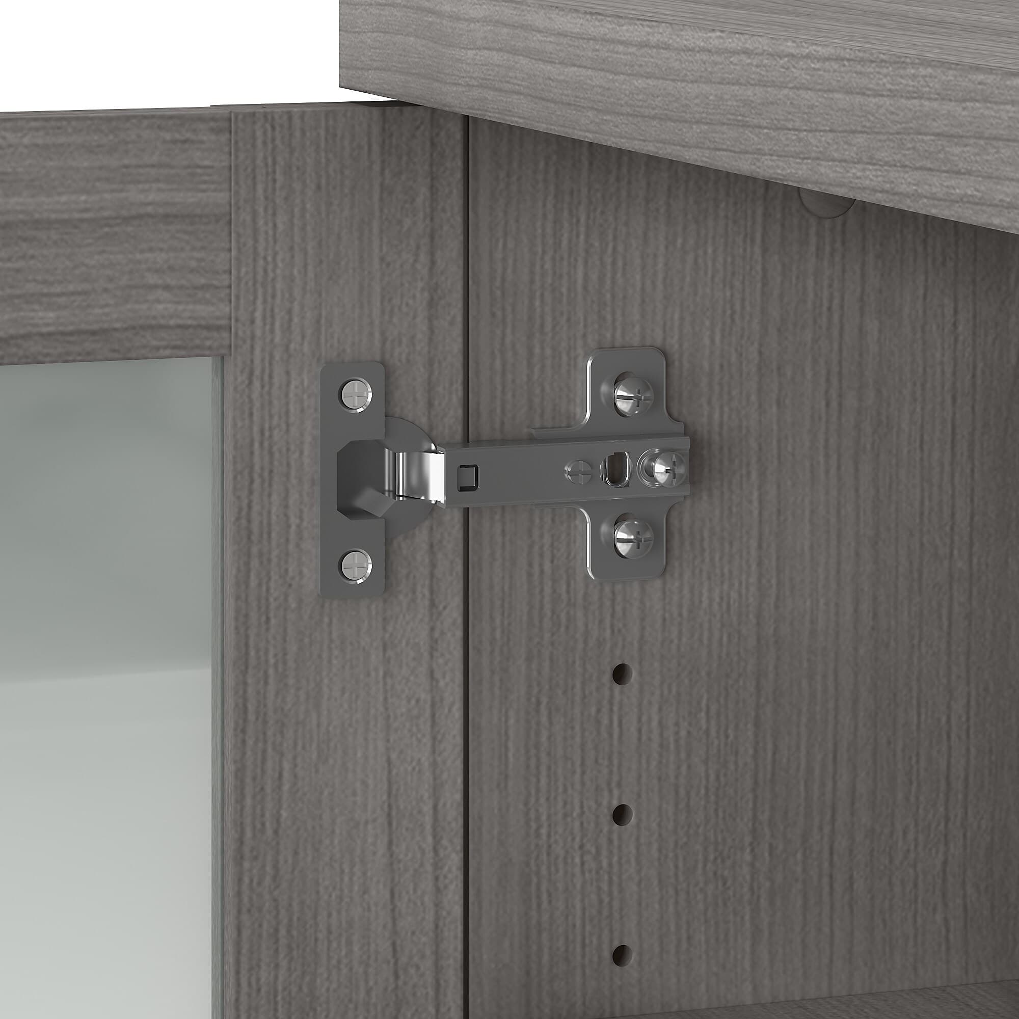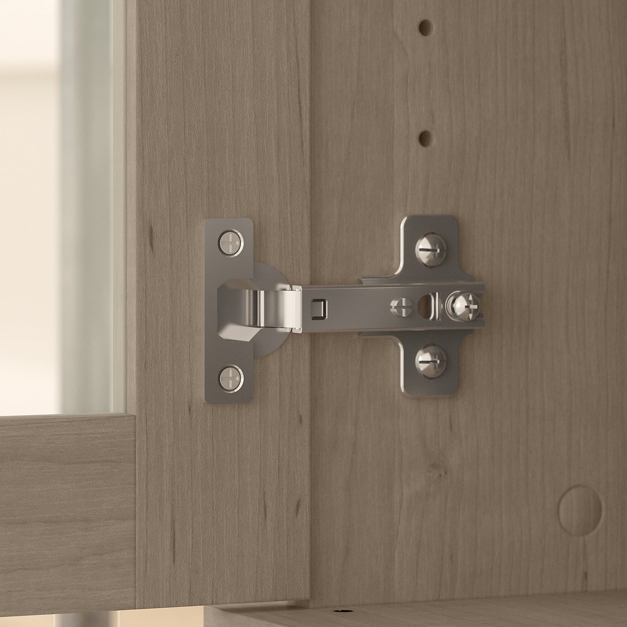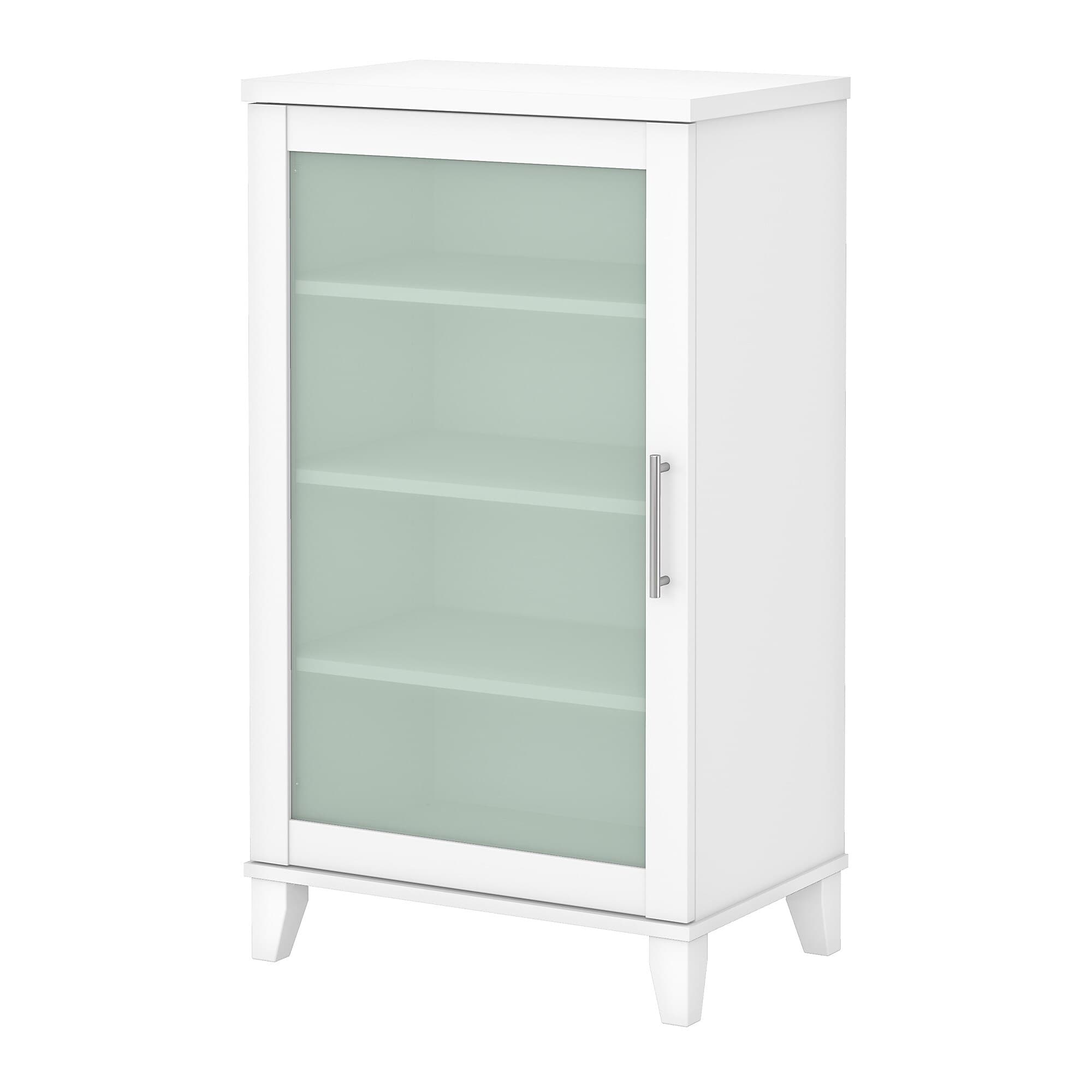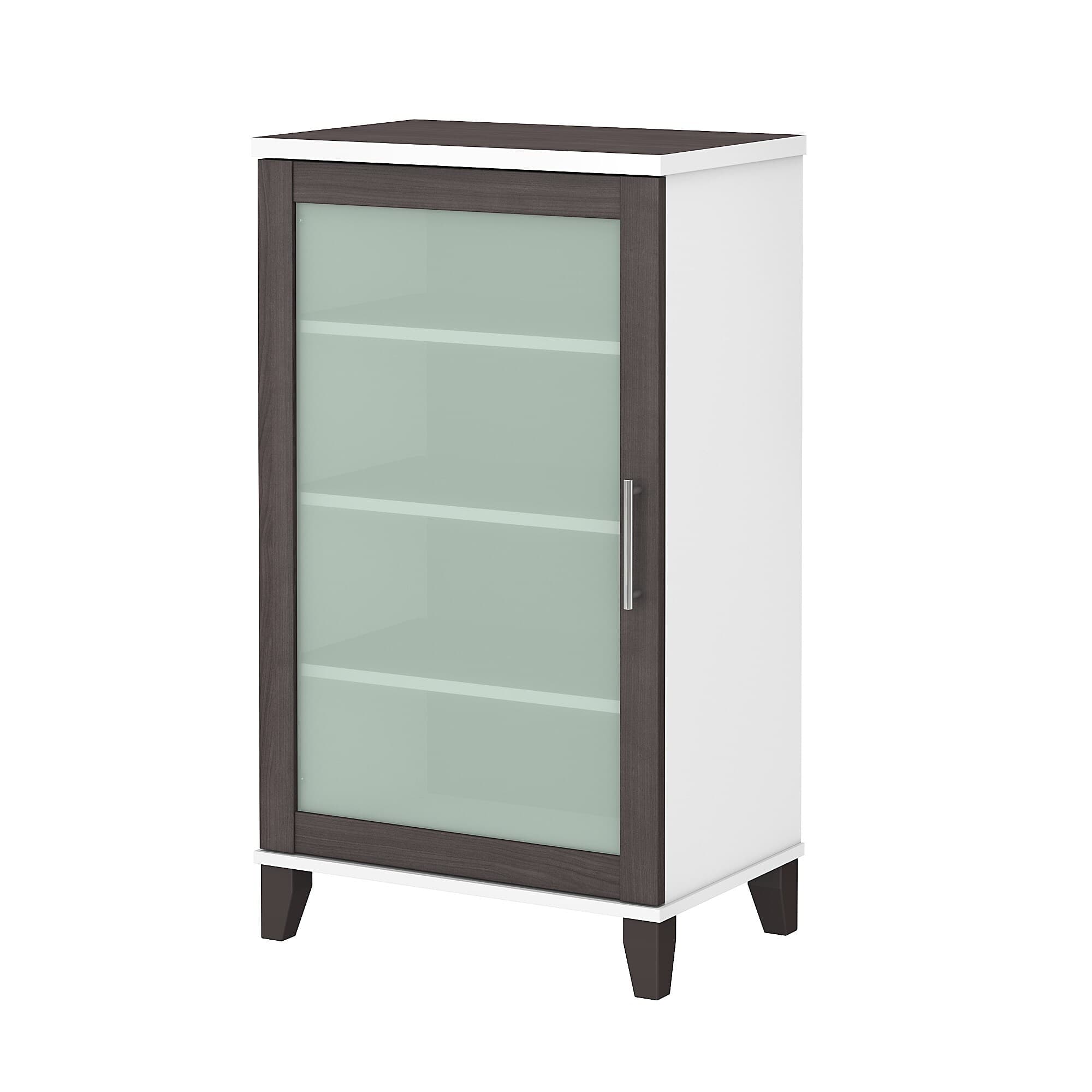 Enhance your living space with the mocha media cabinet. The frosted glass door, with its Euro-style hinges, reveals one fixed and three adjustable shelves. Each can support up to 40 pounds, making it ideal for holding a stereo, record player, DVD player, gaming console, and more. The back panel features cutouts for wire management, keeping cables organized.