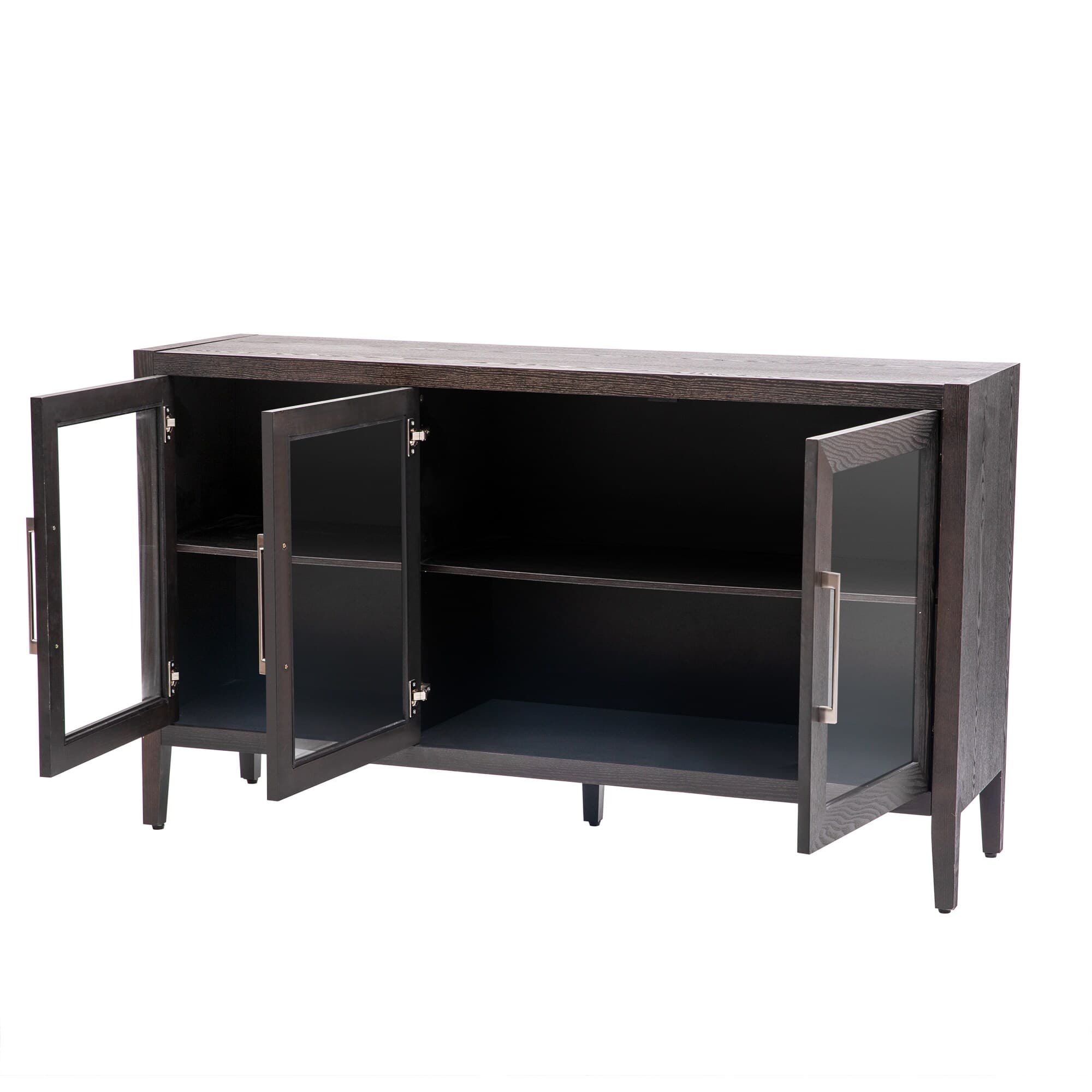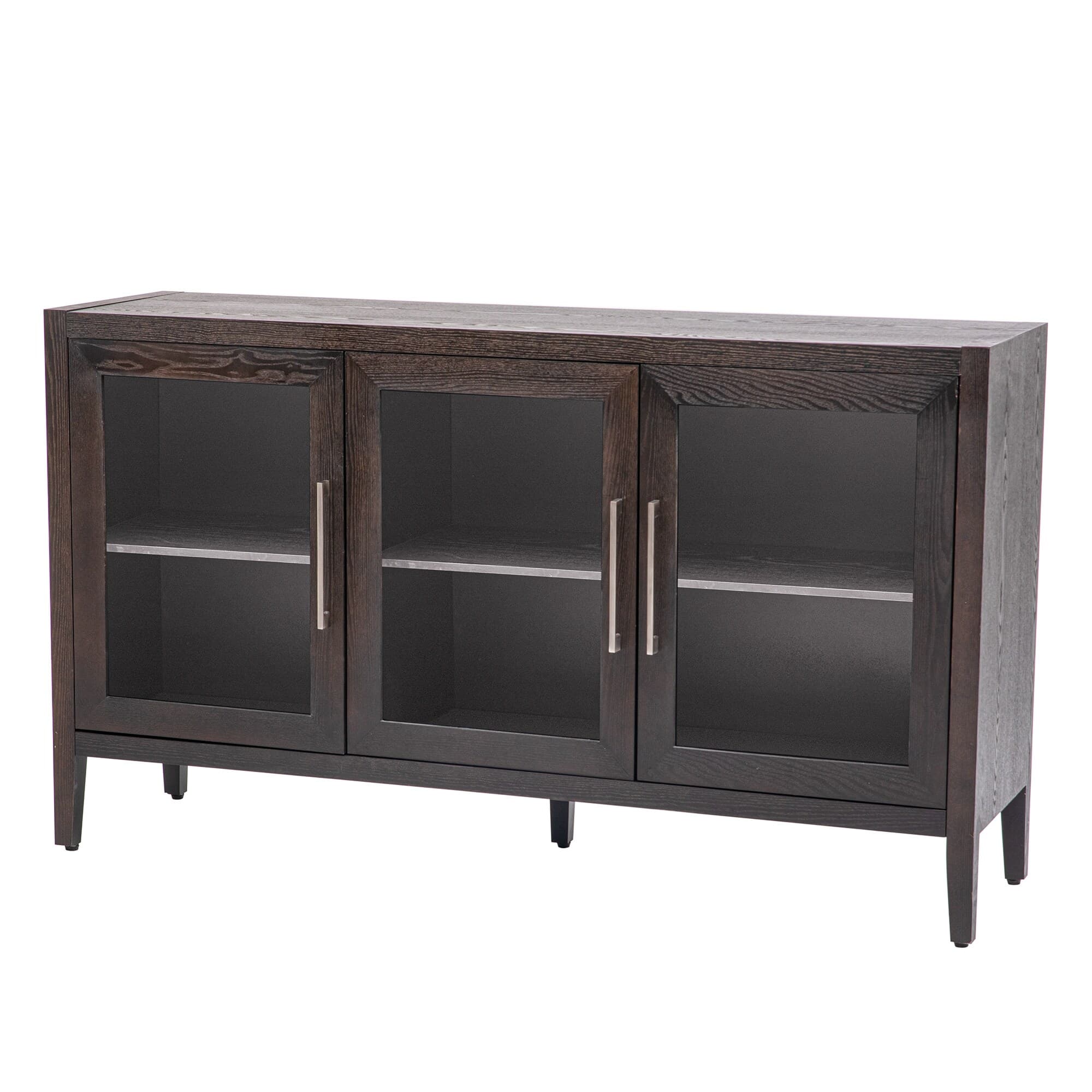 Wood Storage Cabinet with tempered glass doors and Adjustable Shelf