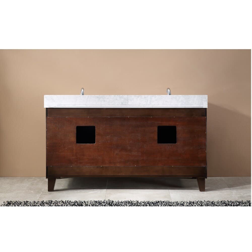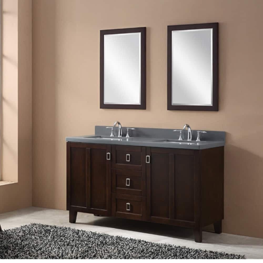Dark Brown Finish 60-inch Grey Quartz Top Double Sink Bathroom Vanity