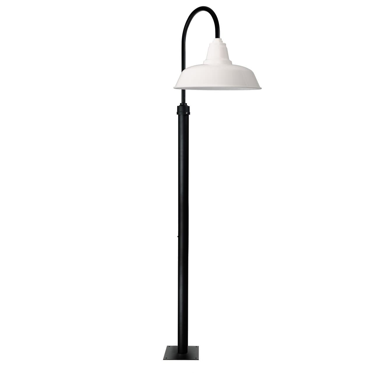 The Goodyear Post Lamp has a classic deep shade that delivers bright outdoor lighting. It is ideal for farm or general landscape lighting. Available shade sizes are 10", 12", 14", and 16", with finishes like black, white, yellow, vintage green, mahogany bronze, cherry red, and galvanized silver.