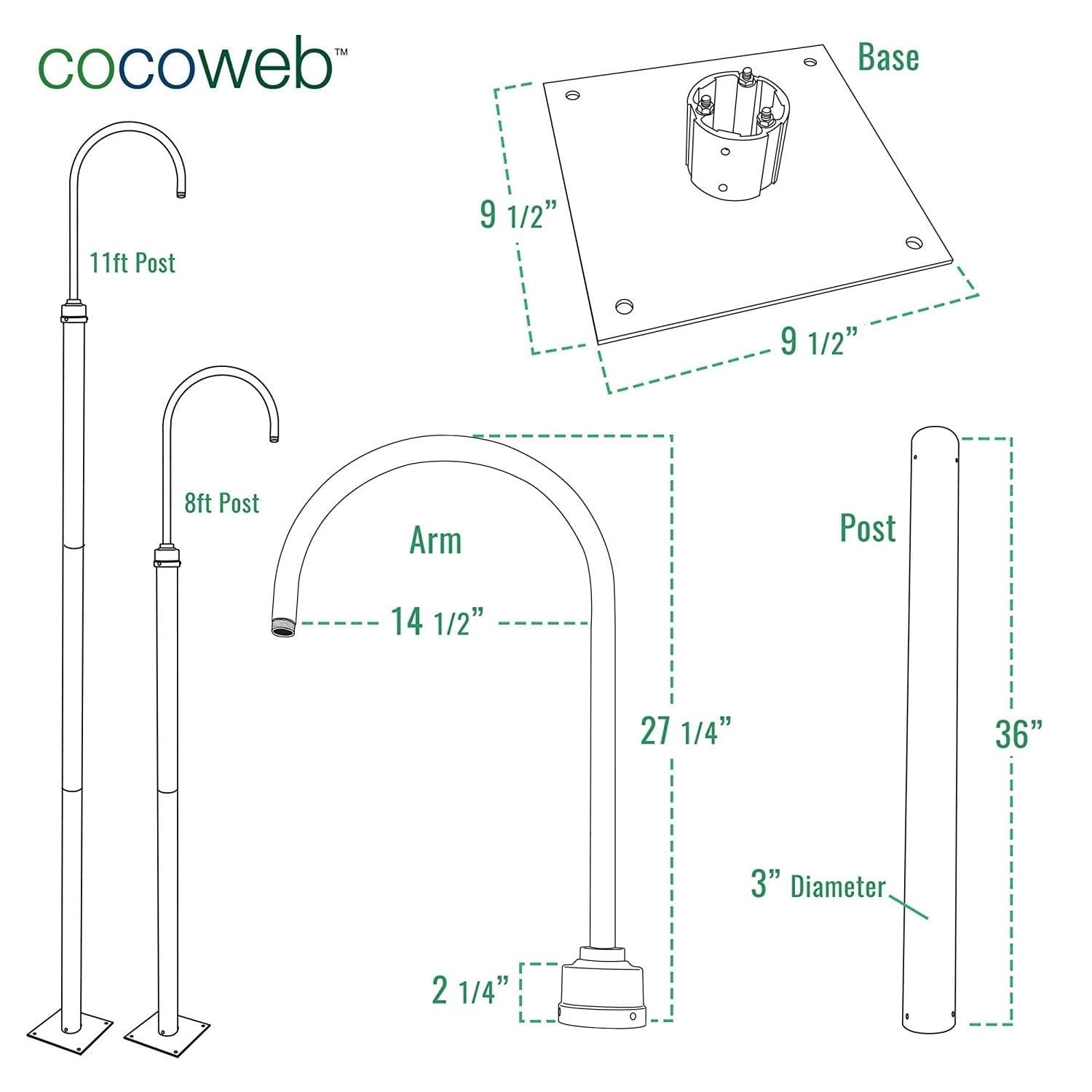 Cocoweb 12" Goodyear LED Post Light in White with 8 Foot Tall Post - N/A