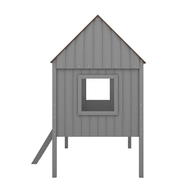 Twin Size Low Loft Wood House Bed with Two Side Windows