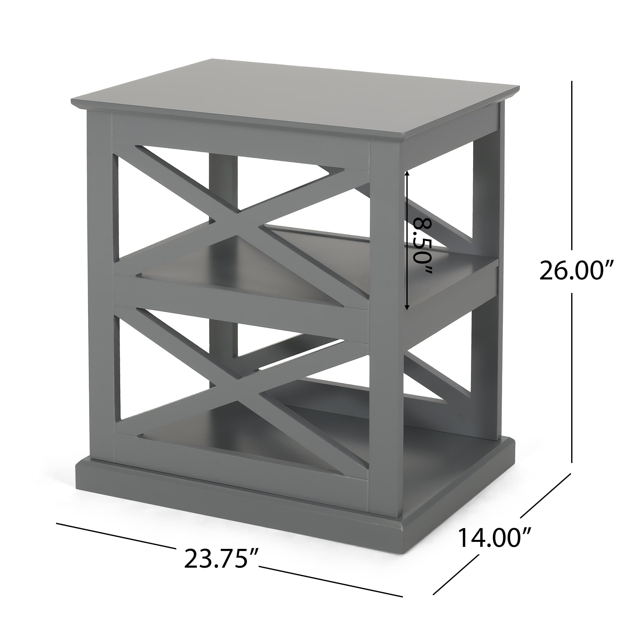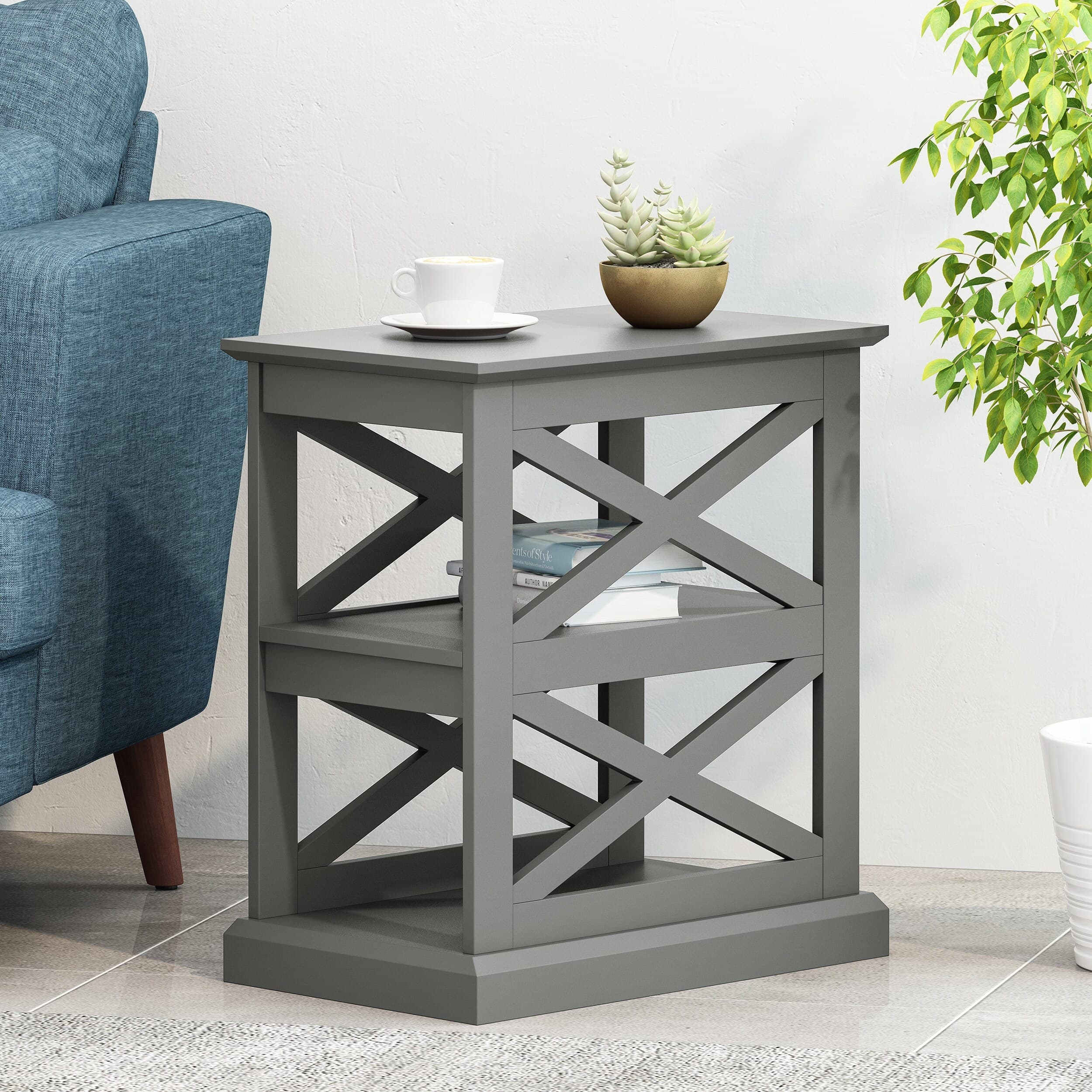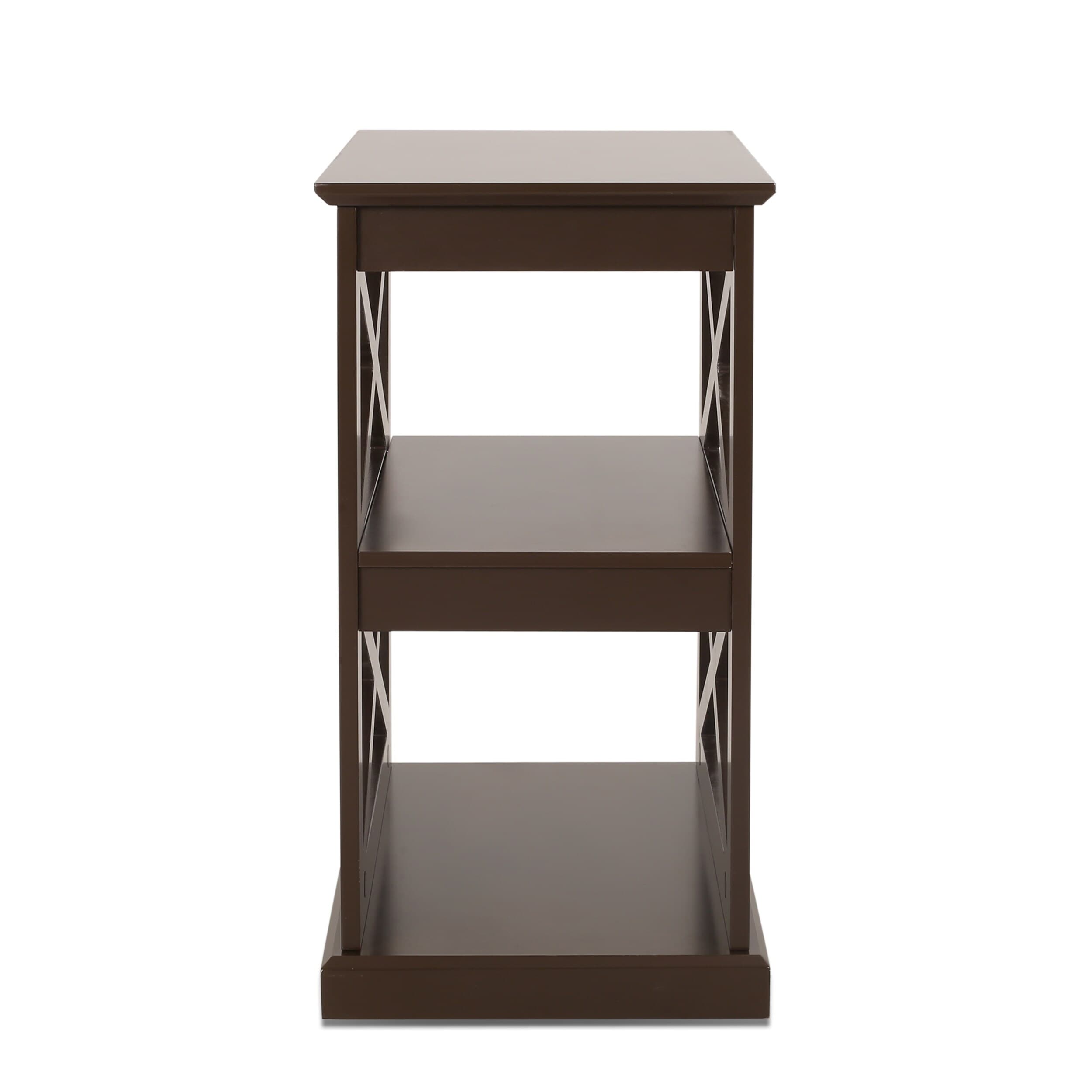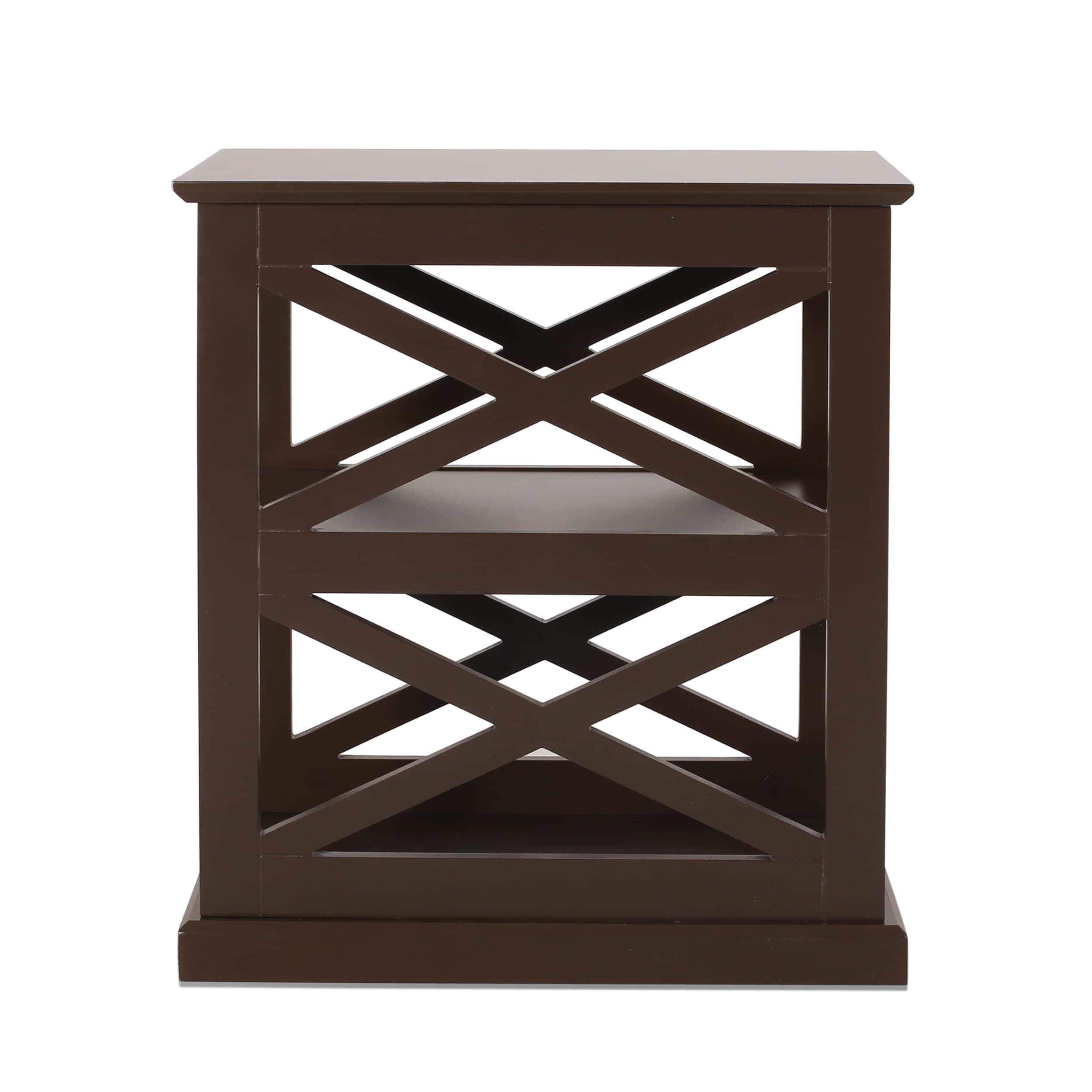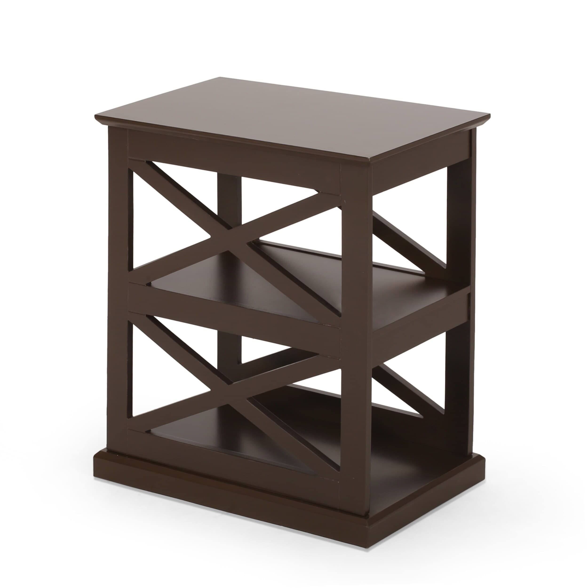 Style and functionality combine in this side table, making it a great addition to any room. With clean lines and a precise design, it features two shelves and X-cross accents for organizing your space while adding an elegant touch to seating areas. Showcase your favorite photos or use the shelves for stacking books, offering useful and stylish table space whenever required.