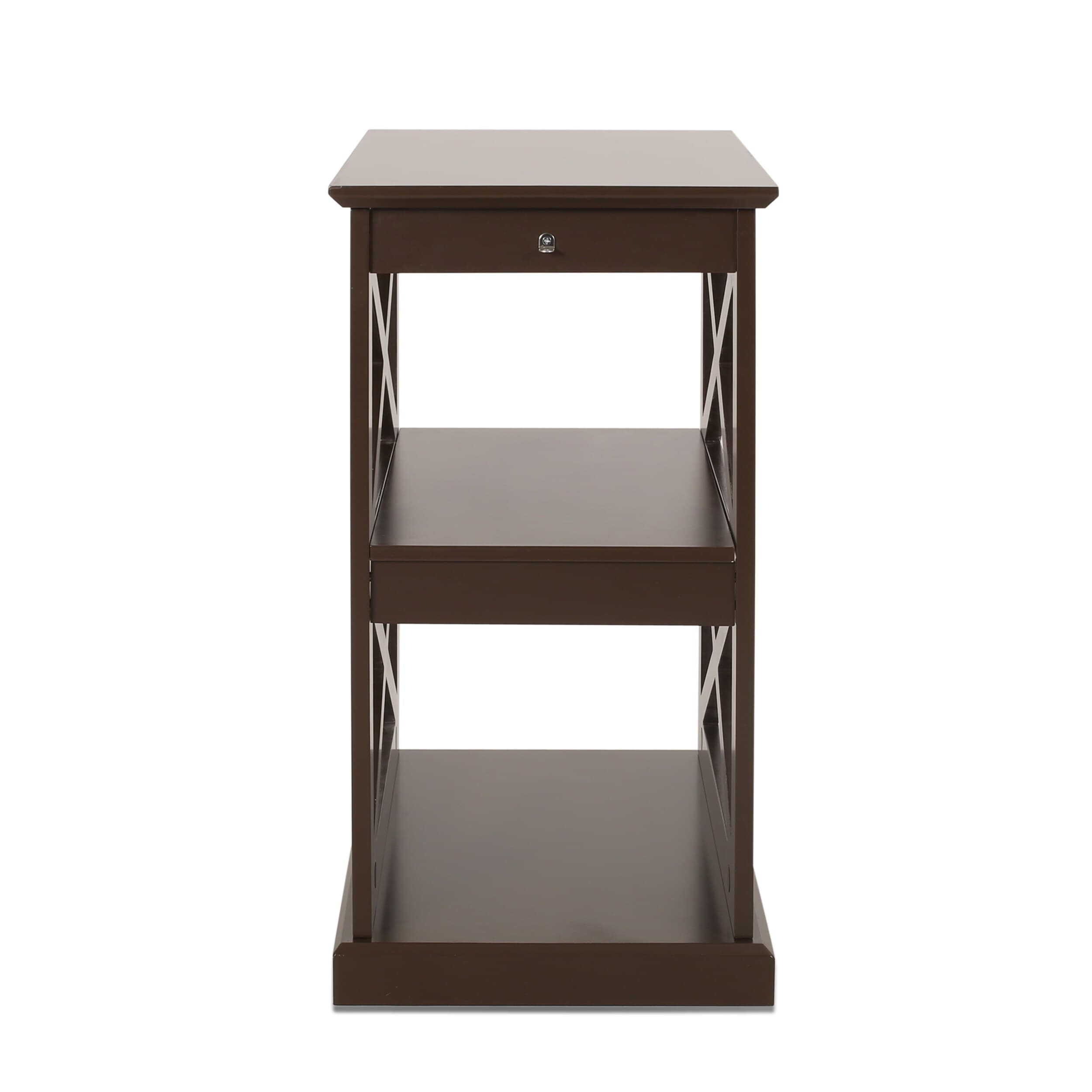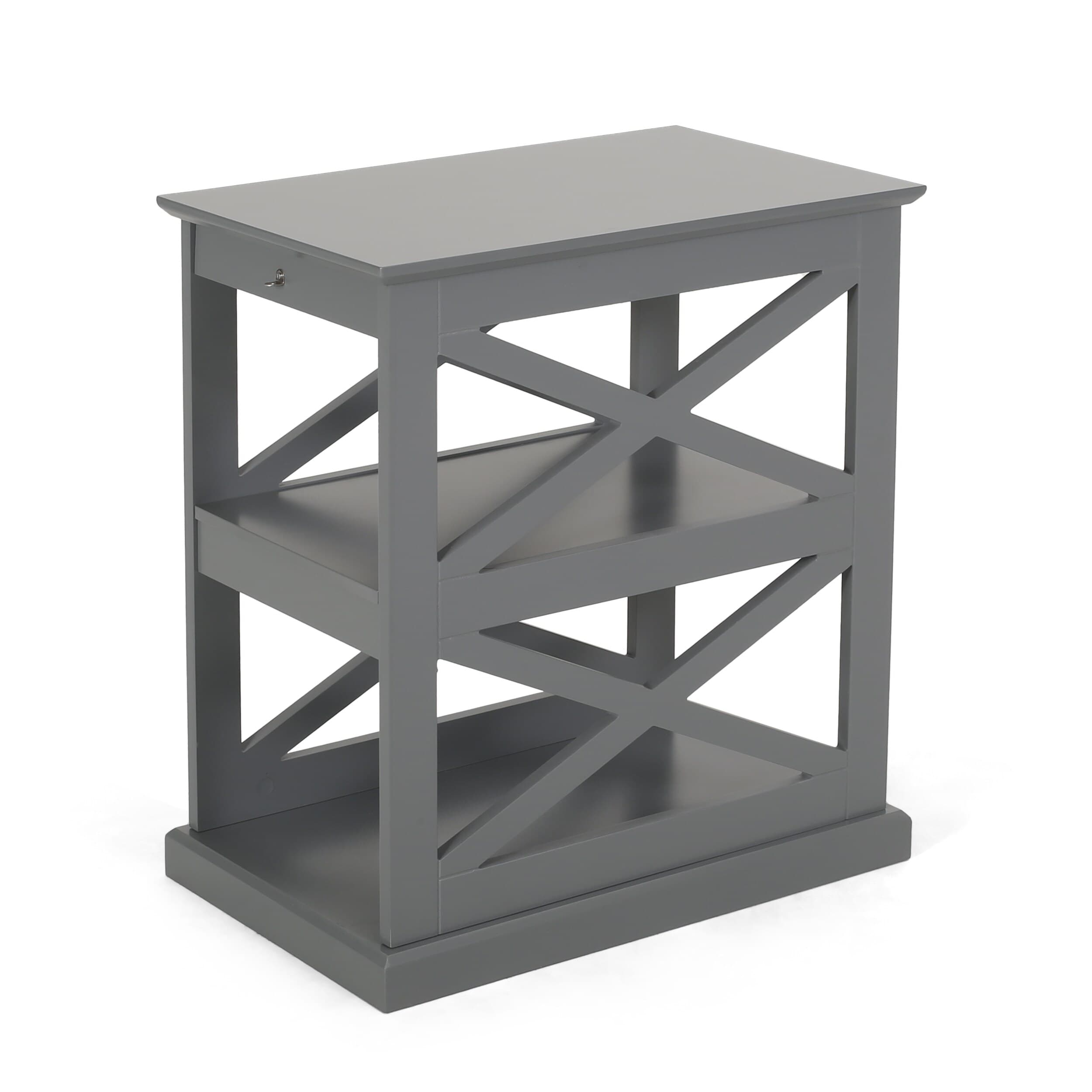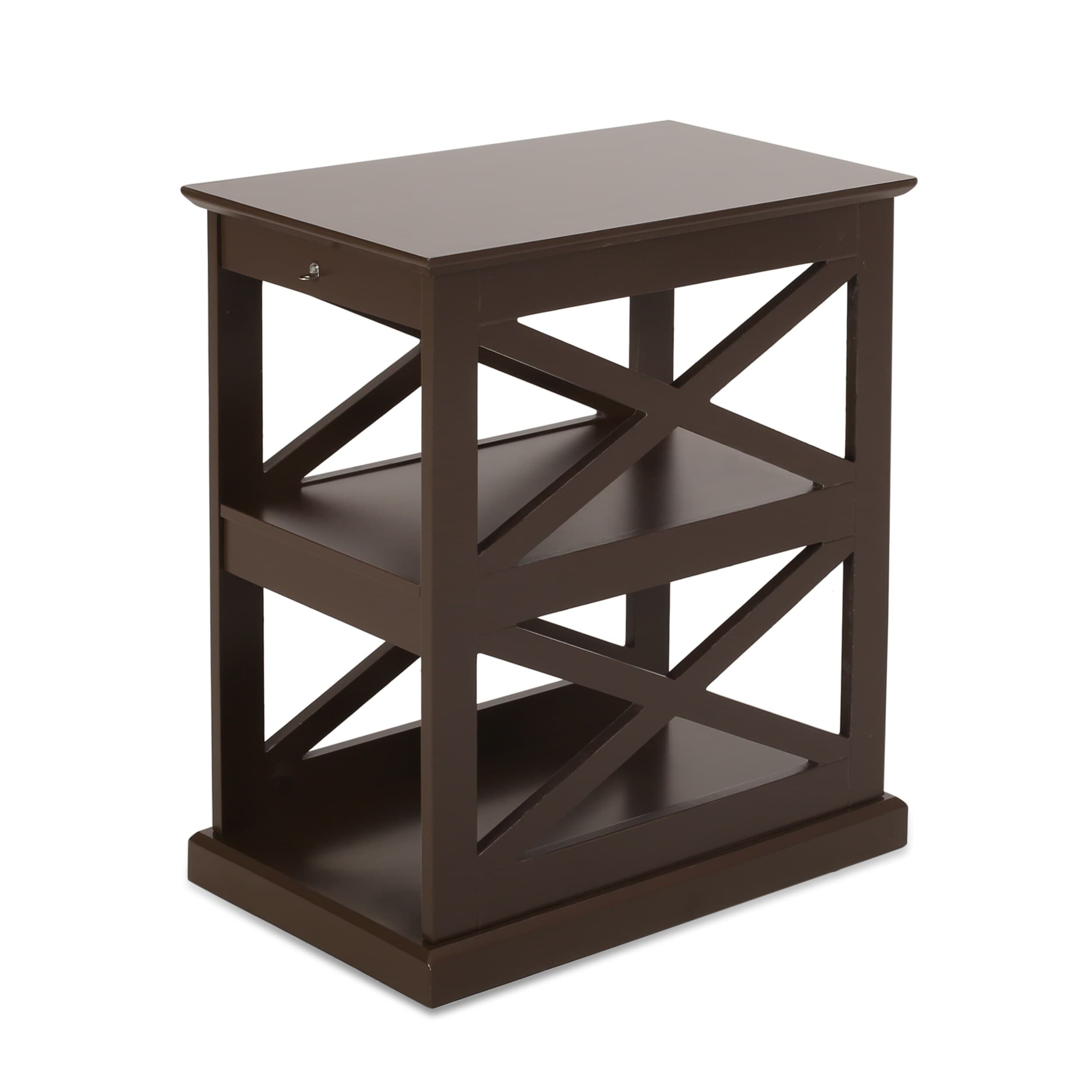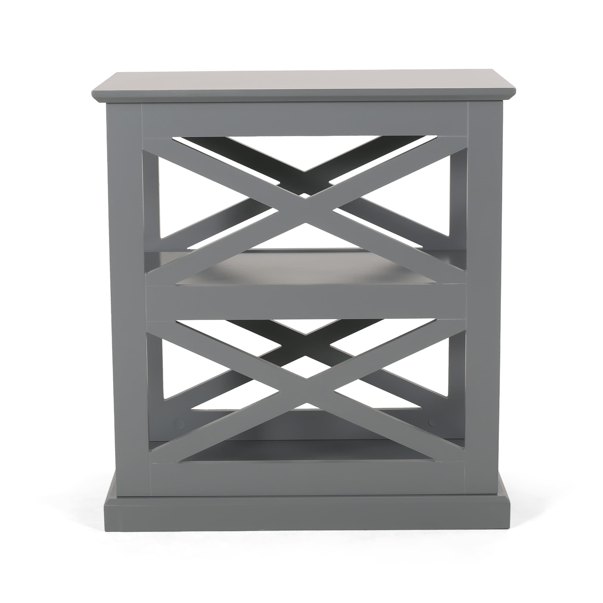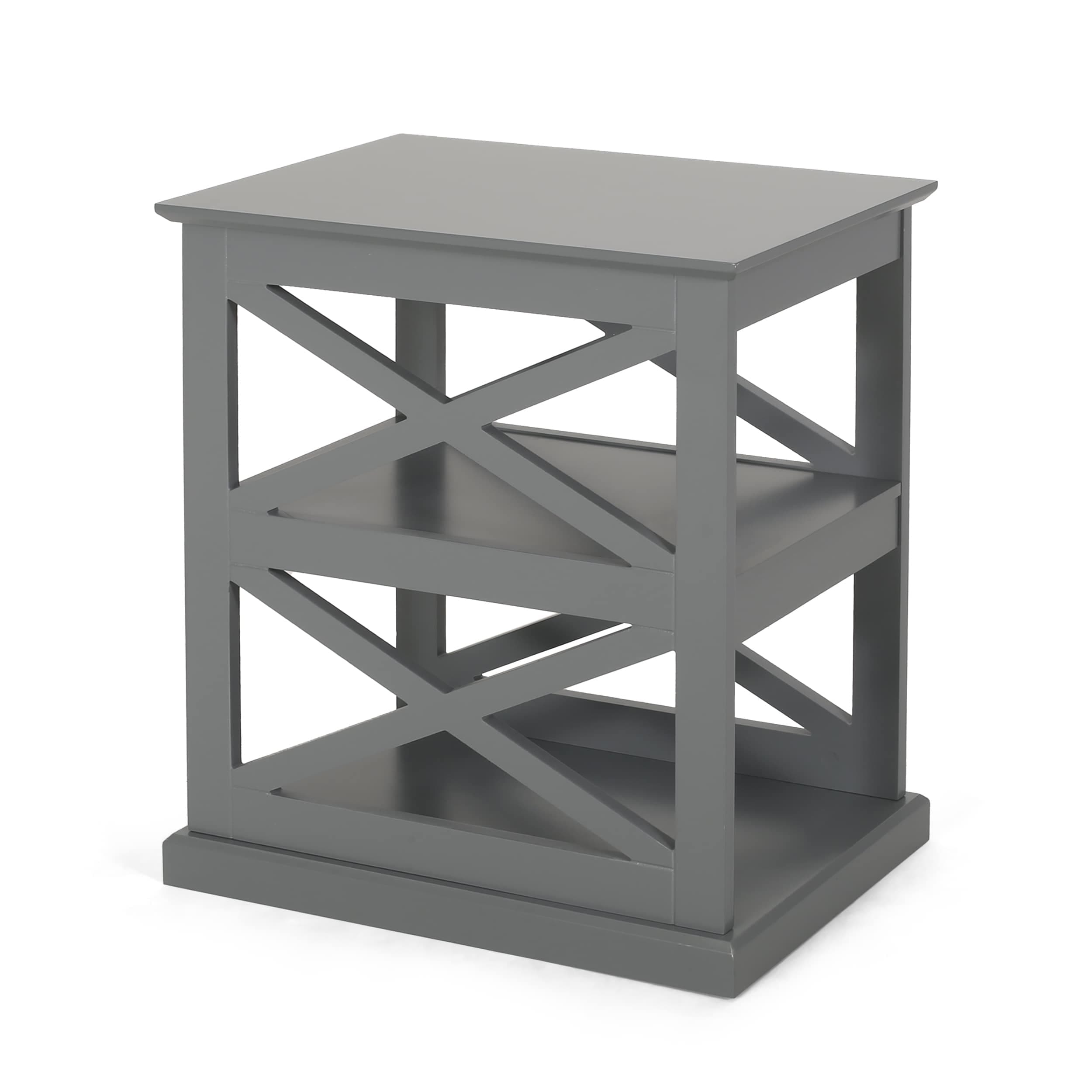 Style and functionality combine in this side table, making it a great addition to any room. With clean lines and a precise design, it features two shelves and X-cross accents for organizing your space while adding an elegant touch to seating areas. Showcase your favorite photos or use the shelves for stacking books, offering useful and stylish table space whenever required.