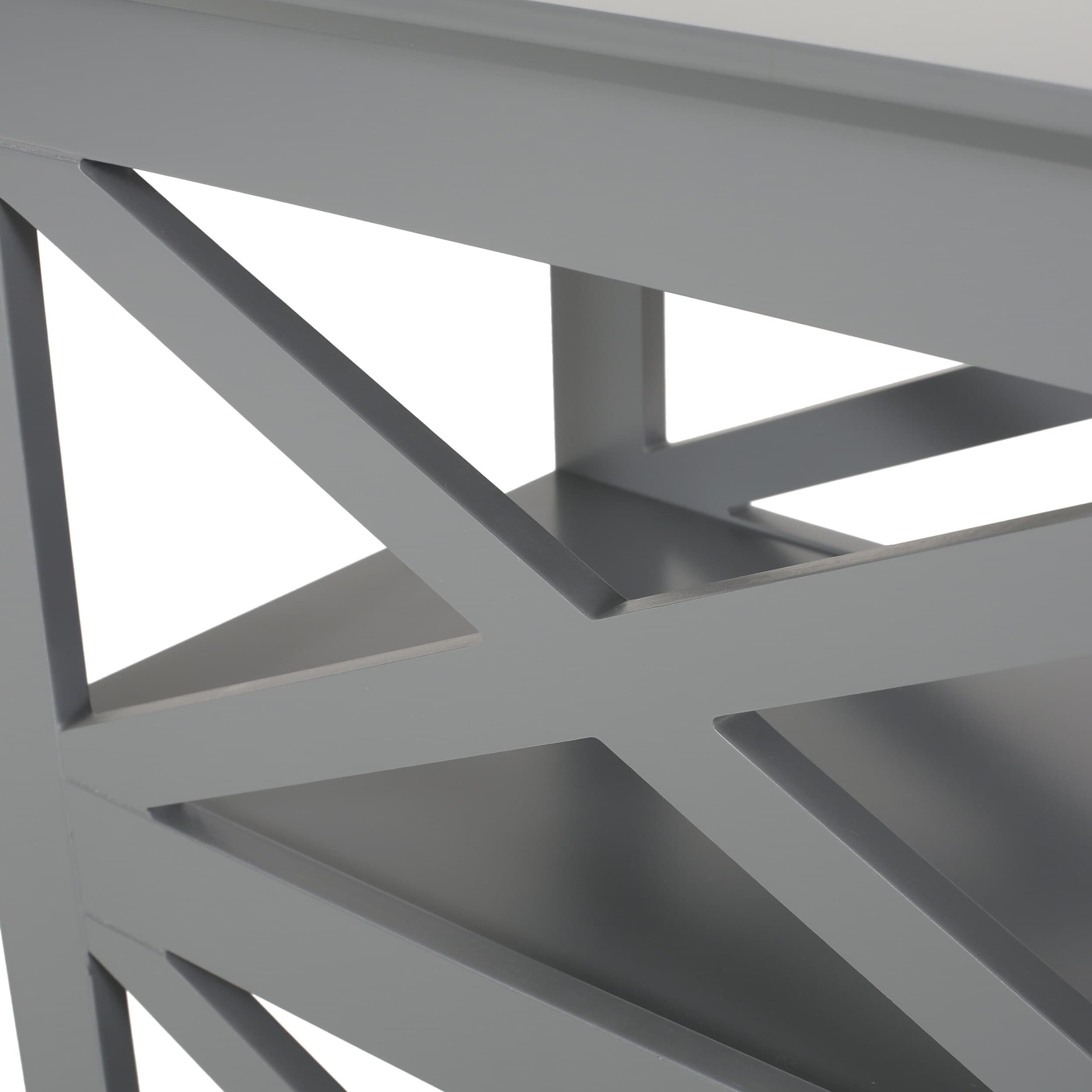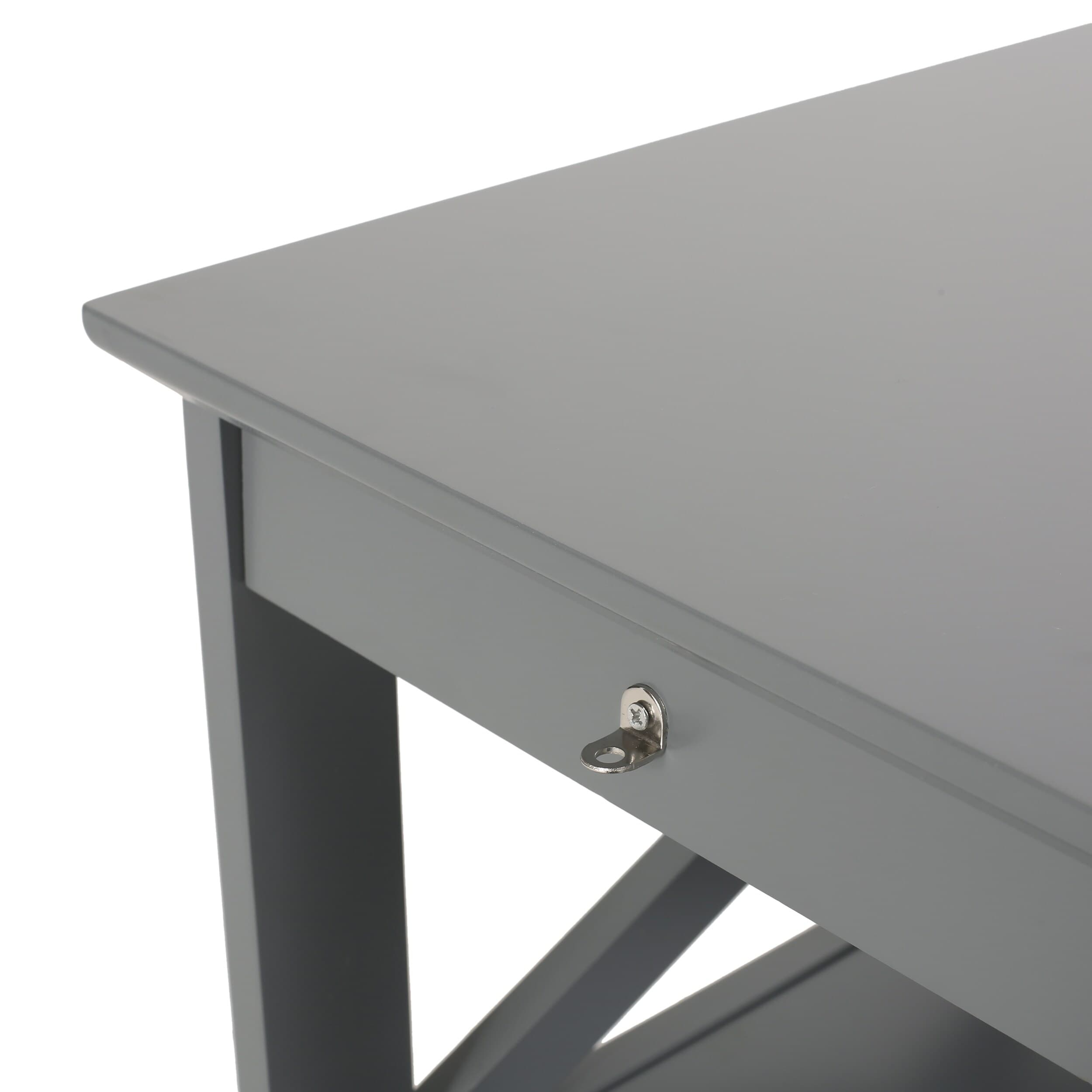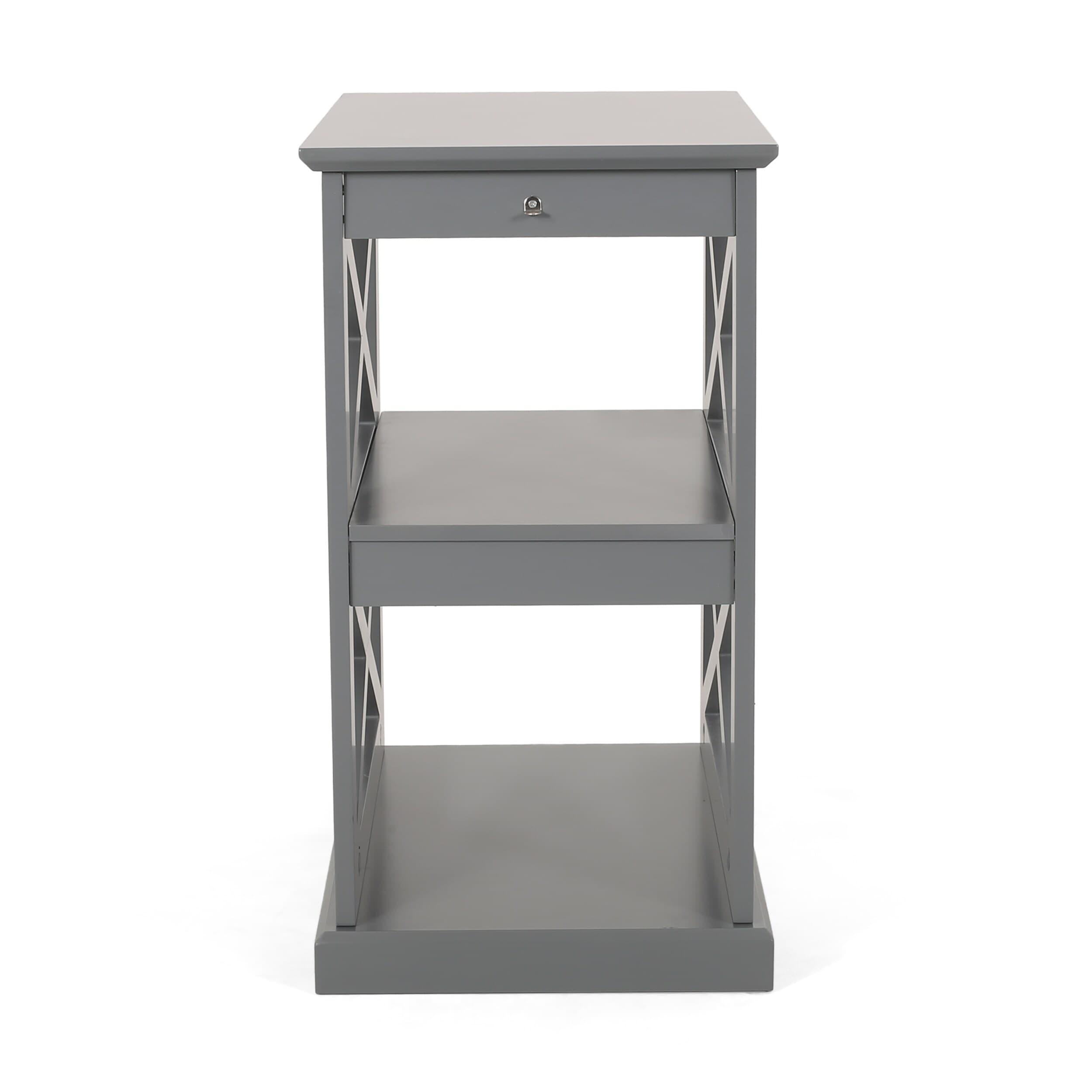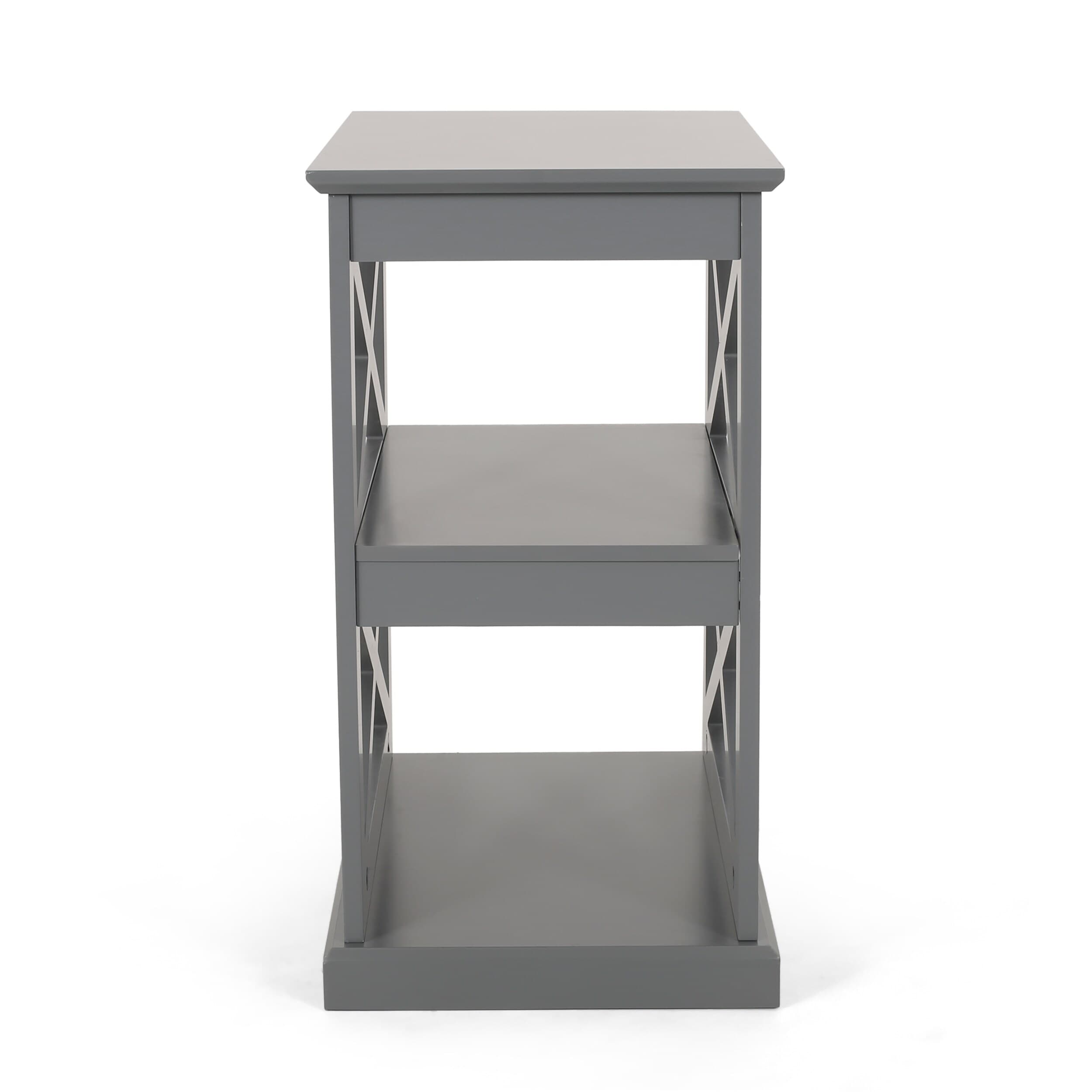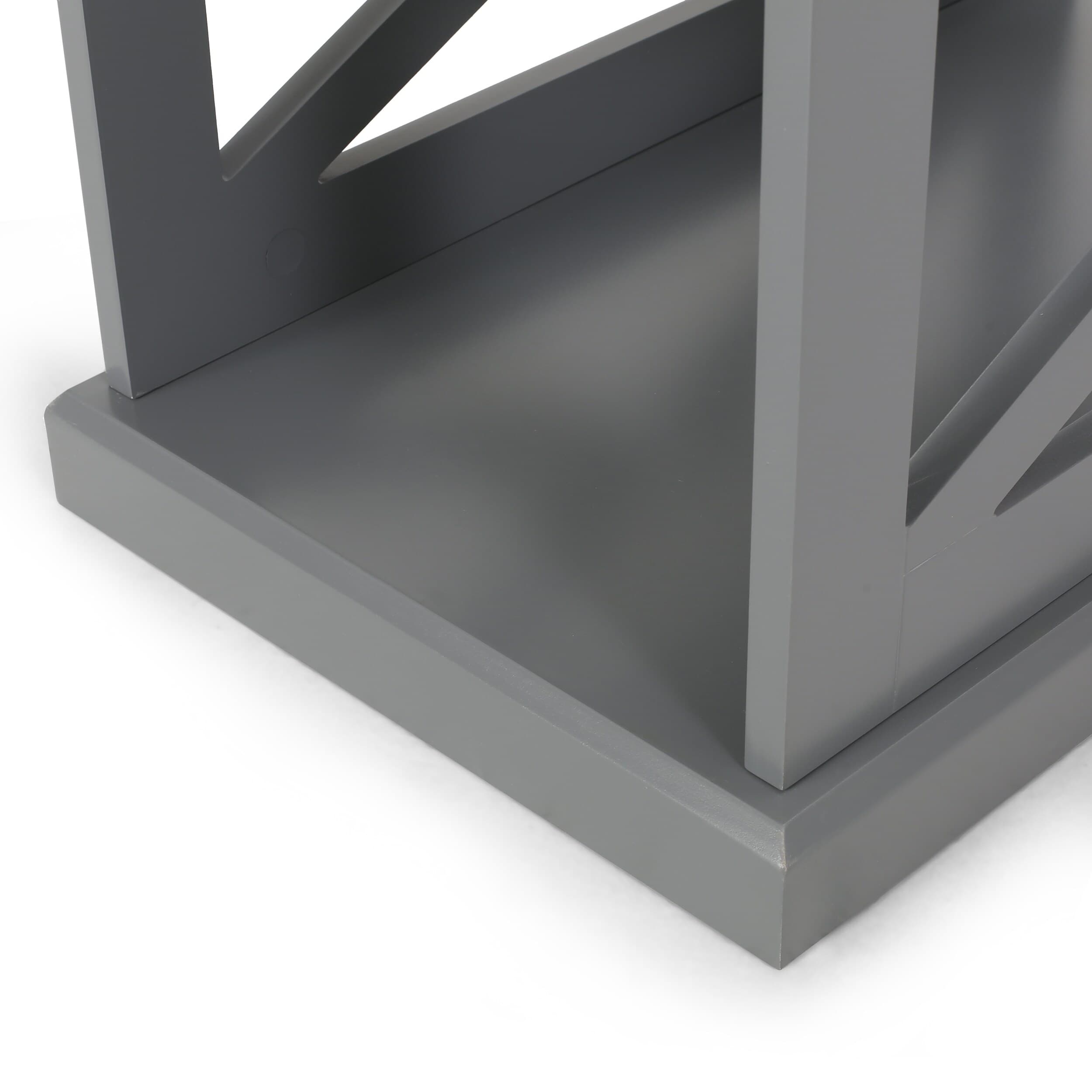 Style and functionality combine in this side table, making it a great addition to any room. With clean lines and a precise design, it features two shelves and X-cross accents for organizing your space while adding an elegant touch to seating areas. Showcase your favorite photos or use the shelves for stacking books, offering useful and stylish table space whenever required.