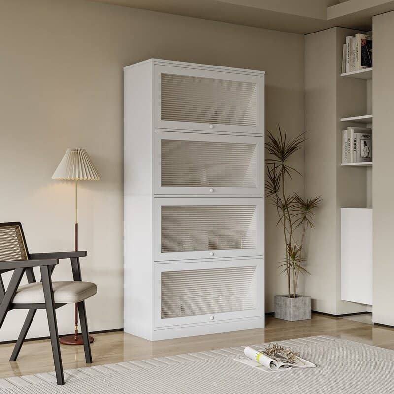 Glass Doors Storage Cabinet, Floor-to-Ceiling Low Cabinet Dustproof Bookshelf