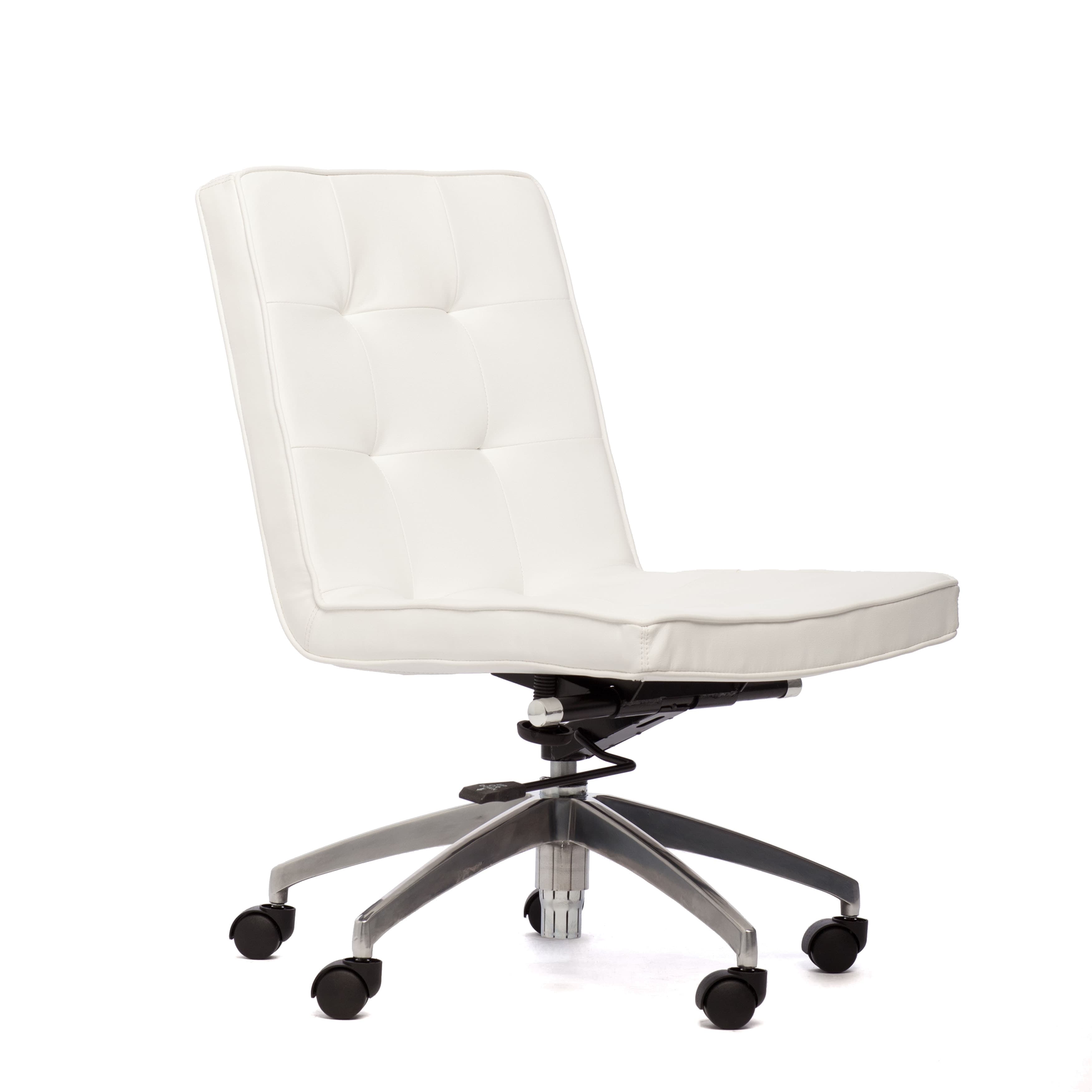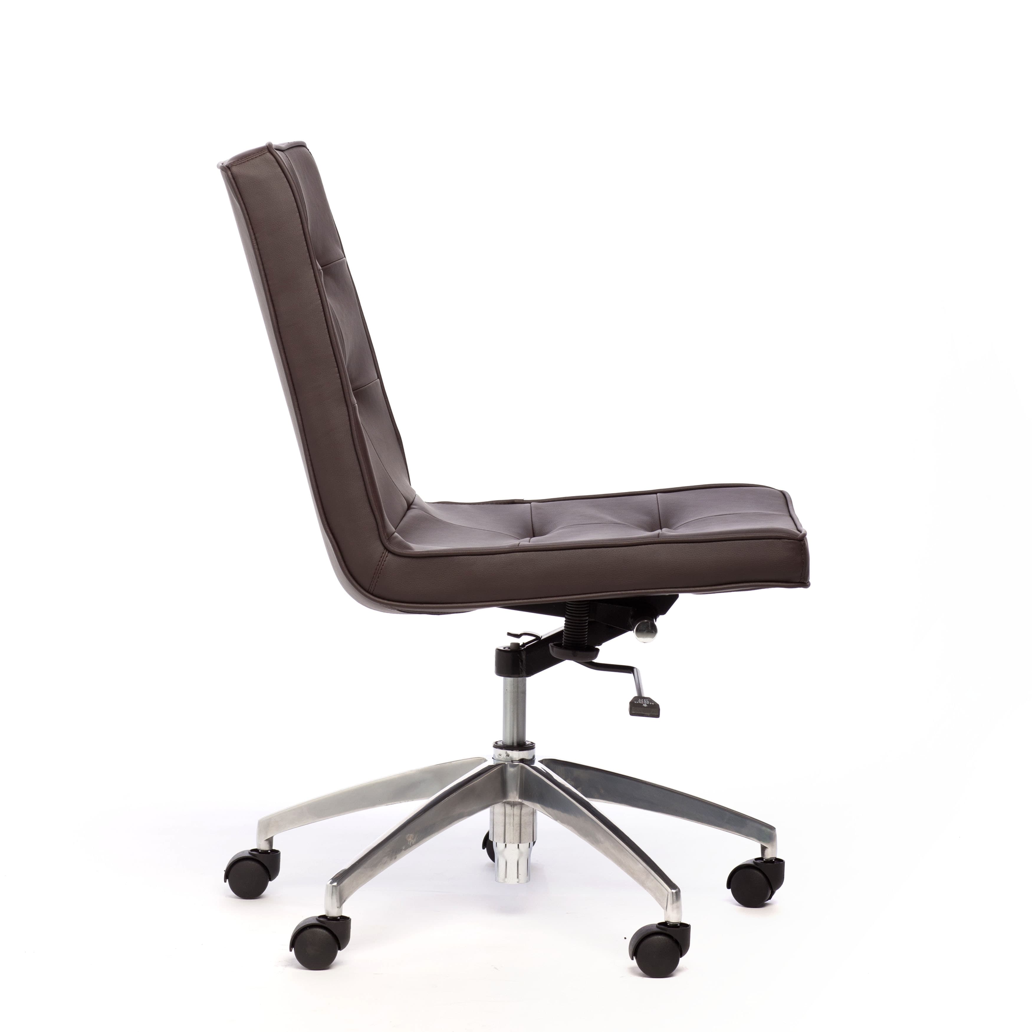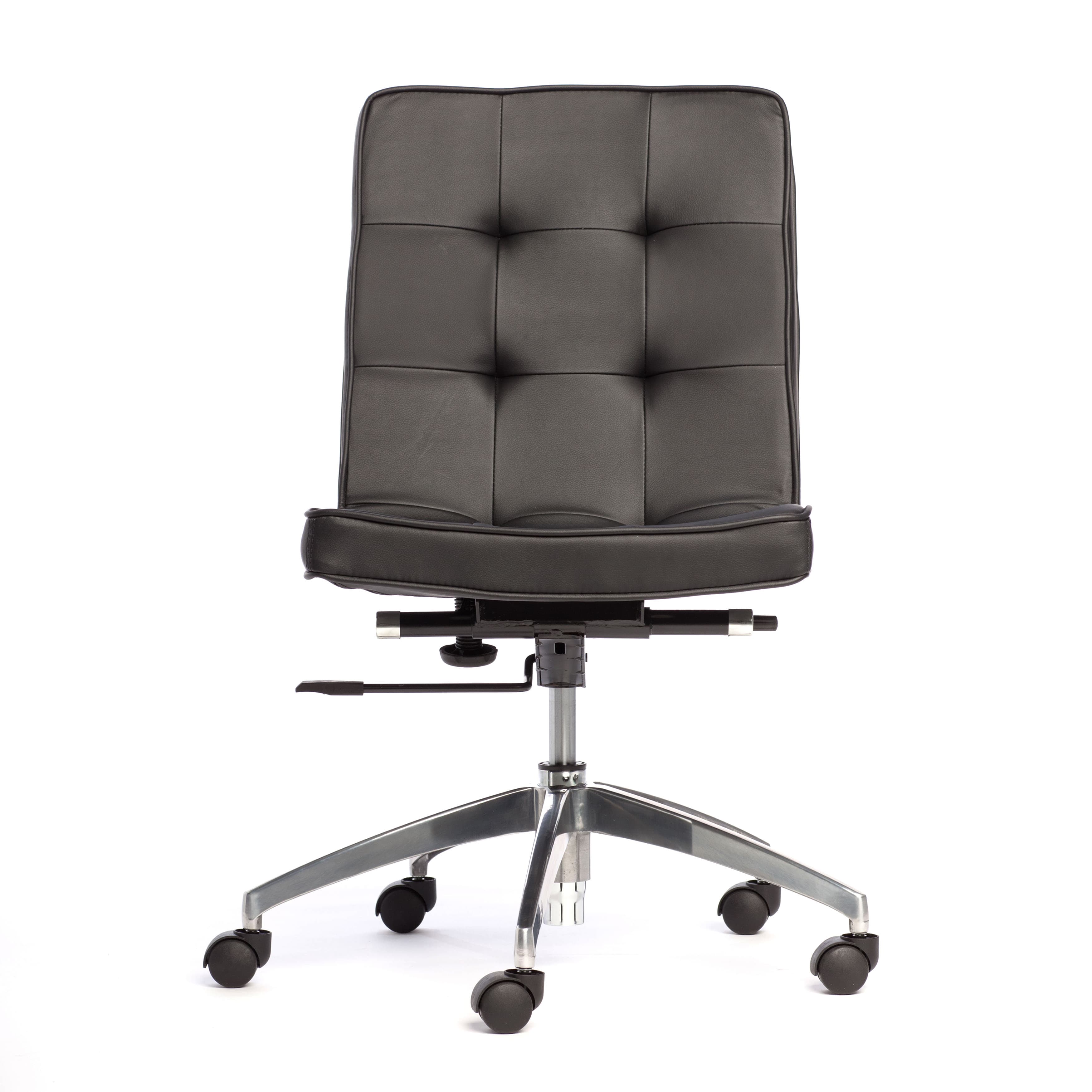 Designed for comfort, this swivel office chair includes casters for easy movement. It boasts a matte finish with a soft polyurethane ribbed seat, while the seating height is adjustable from 16 to 19 inches.