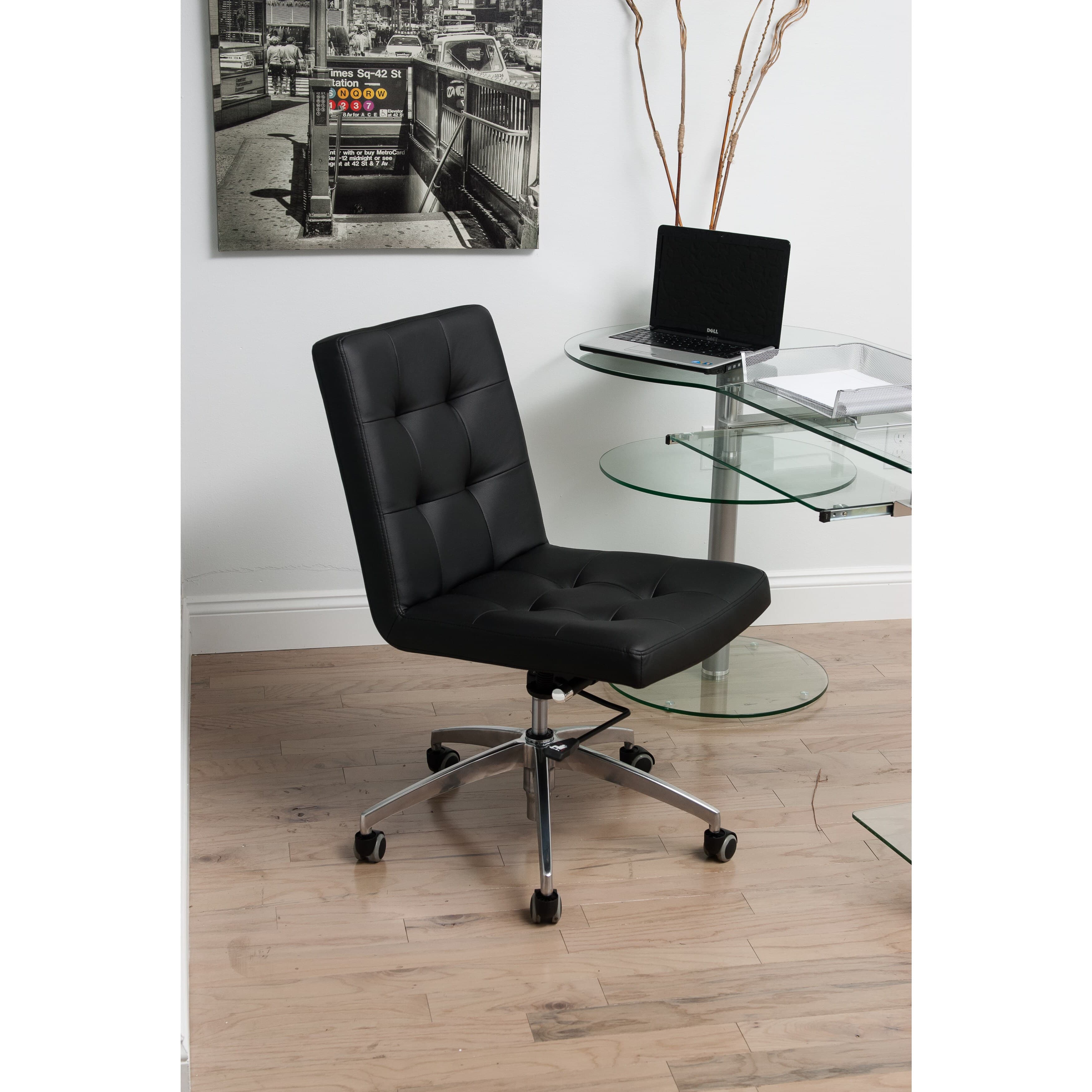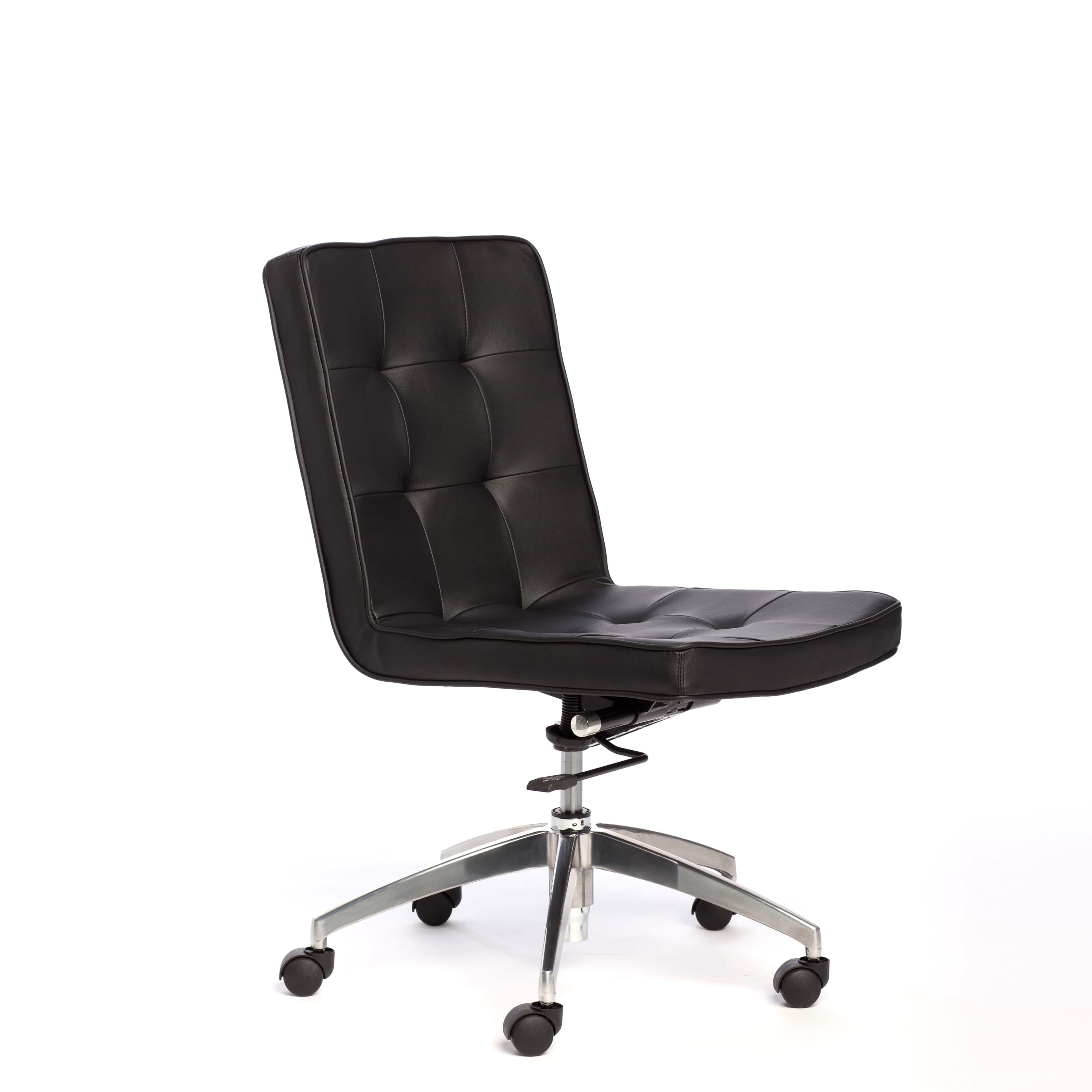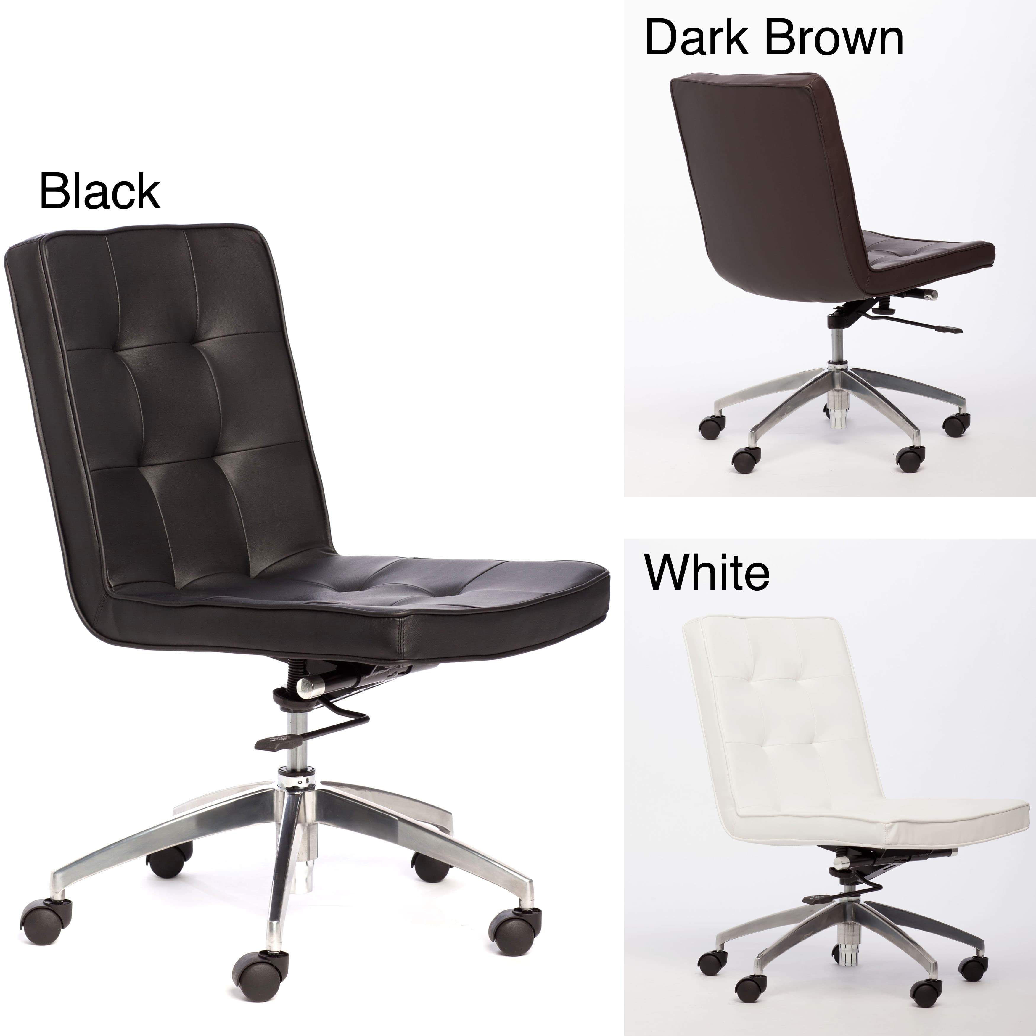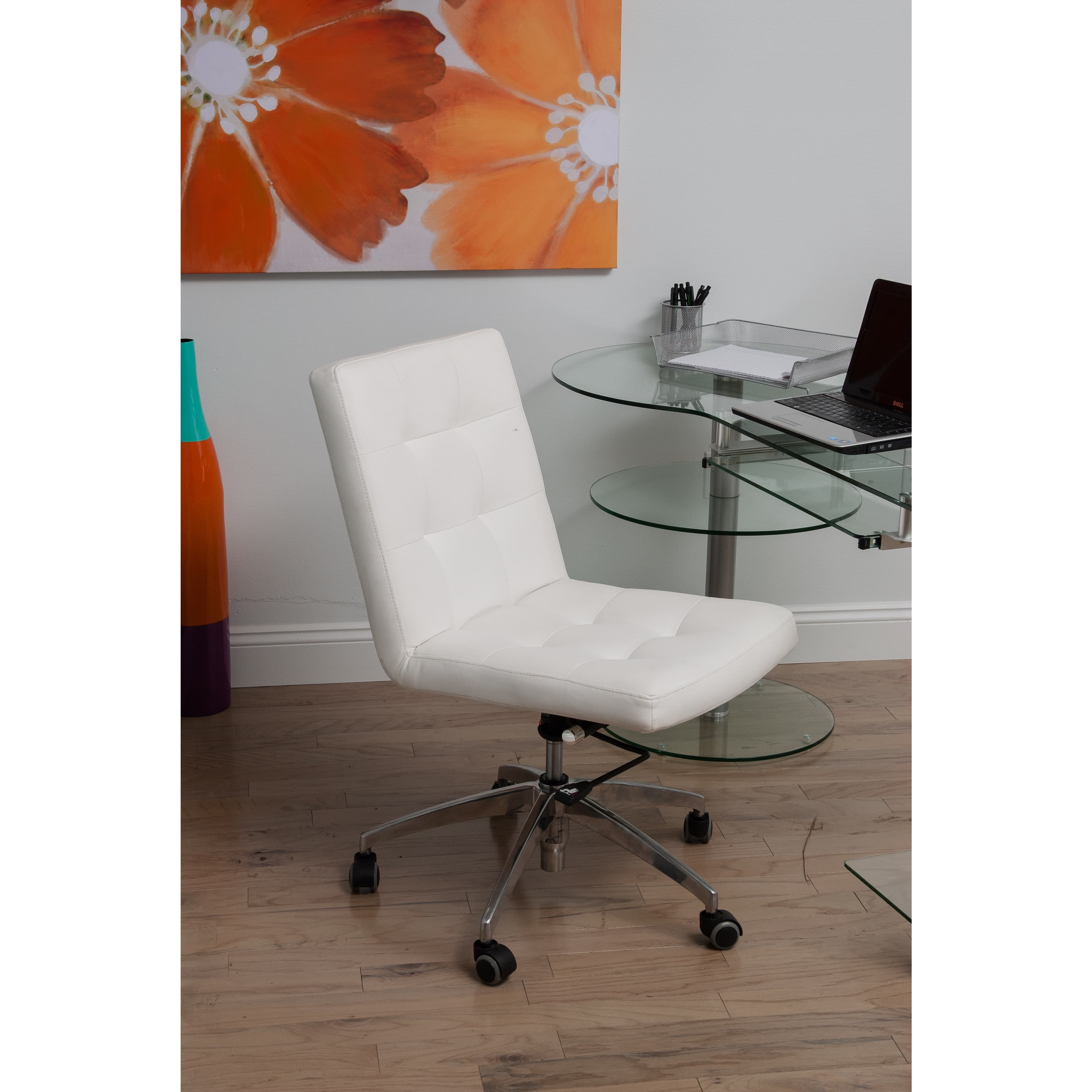 Designed for comfort, this swivel office chair includes casters for easy movement. It boasts a matte finish with a soft polyurethane ribbed seat, while the seating height is adjustable from 16 to 19 inches.