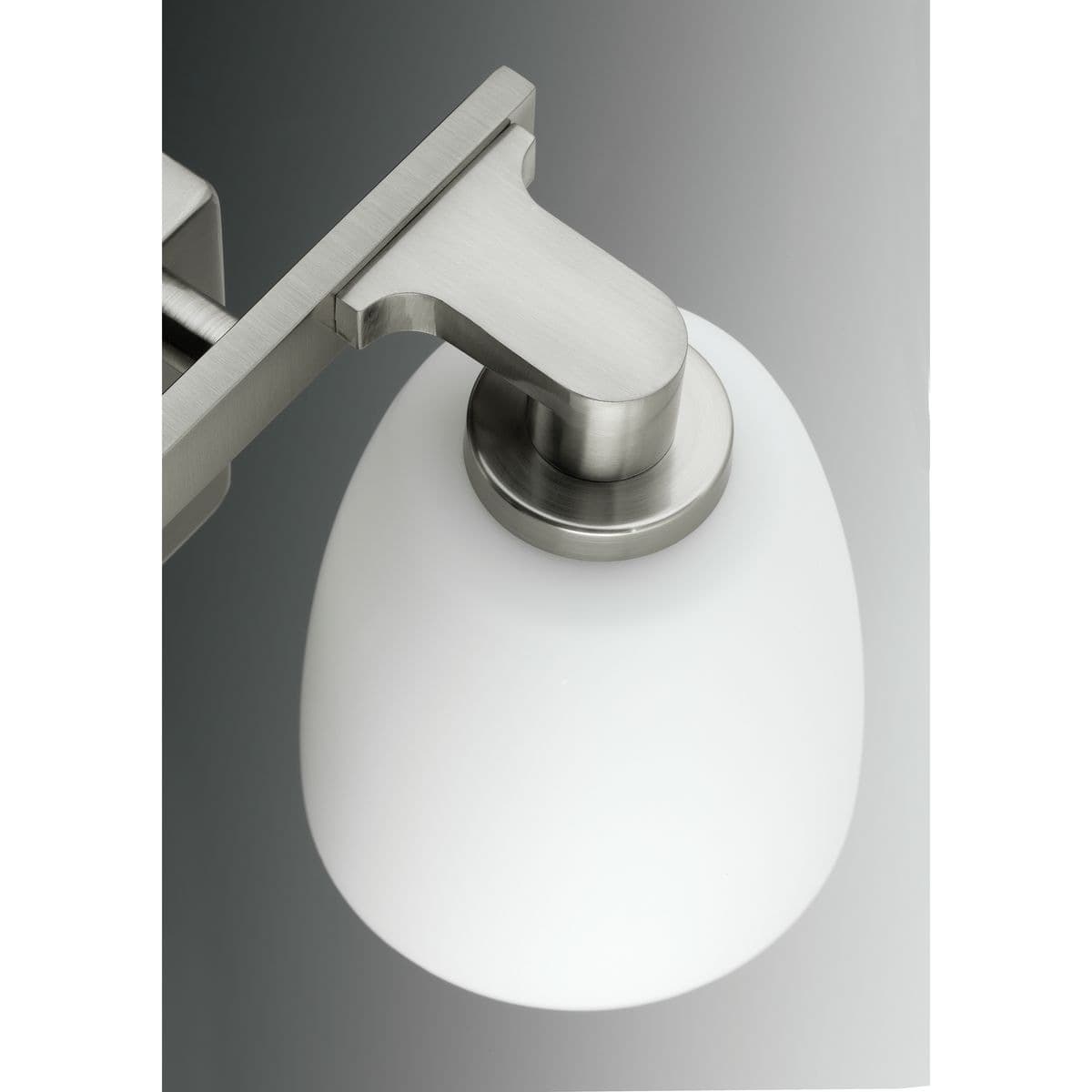 Elevate your bathroom with a touch of European flair using this three-light fixture. The aluminum arms mimic European faucet styles. Etched opal glass enhances the modern look of this piece.