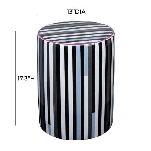 Trey Stripe Ceramic Garden Stool - Black/White | Perch Stool, Outdoor Stool, Patio Stool - Multi