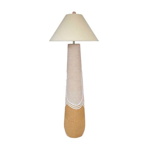 Experience the Brielle Woven Floor Lamp, a midi-height light fixture wrapped in handwoven natural cord by Vietnamese artisans using materials from local farms. It combines a natural look with a stylish linen shade and a braided power cord, highlighting traditional craft and sustainable production, ideal for those valuing style and ethical practices.