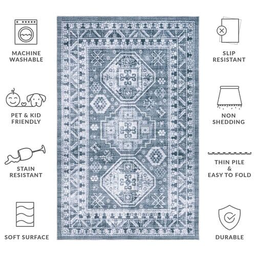 Enhance busy living areas with Washable Rugs that merge style and performance. Featuring timeless designs with an antique finish, these adaptable rugs are perfect for any room and are machine washable for simple cleaning. Crafted from soft synthetic yarns, they ensure great comfort.