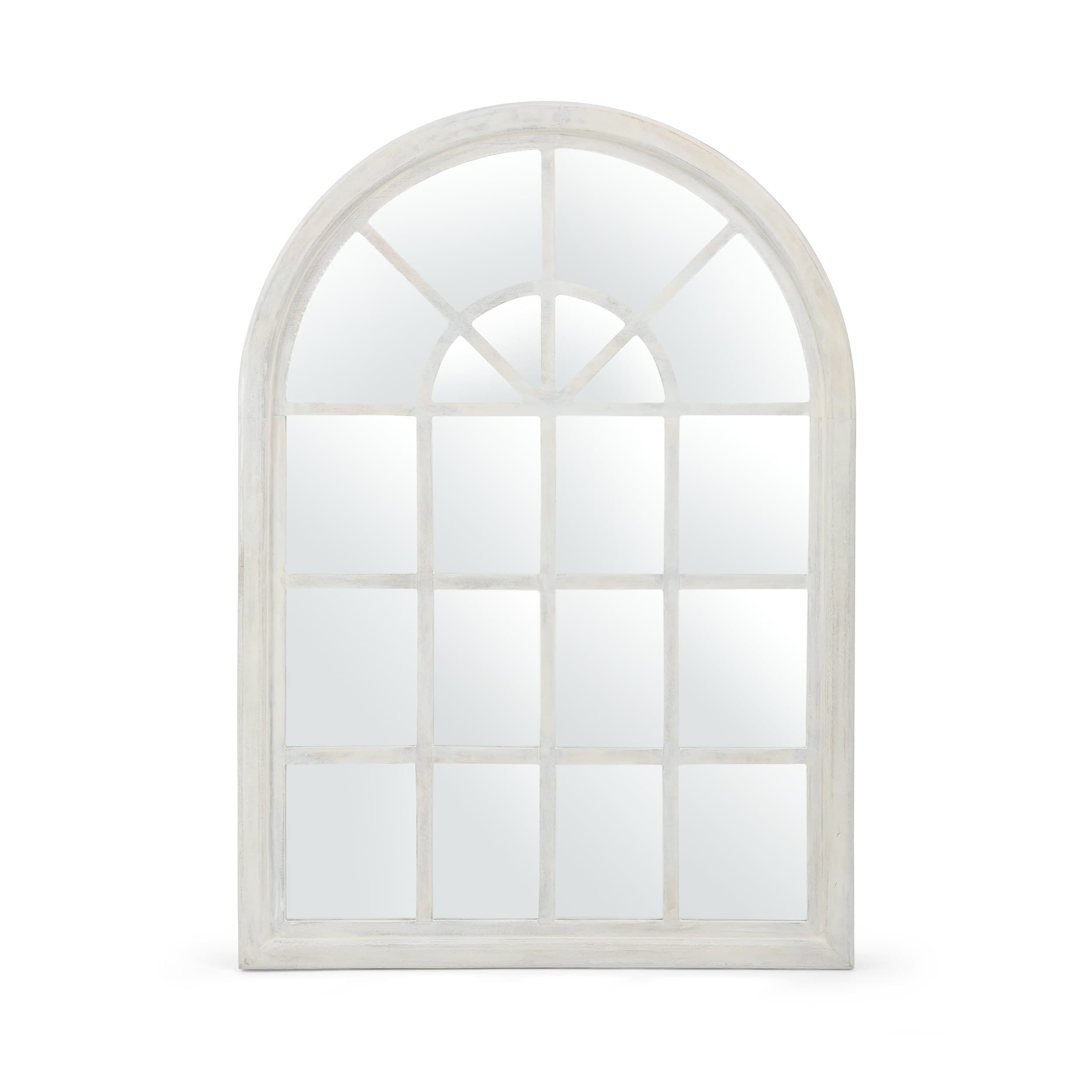 Traditional Arched Windowpane Wall Mirror with Handcrafted Mango Wood Frame, Decorative Wall Mirrors, 31" L x 1.25" W x 44" H, White | Aosom.com