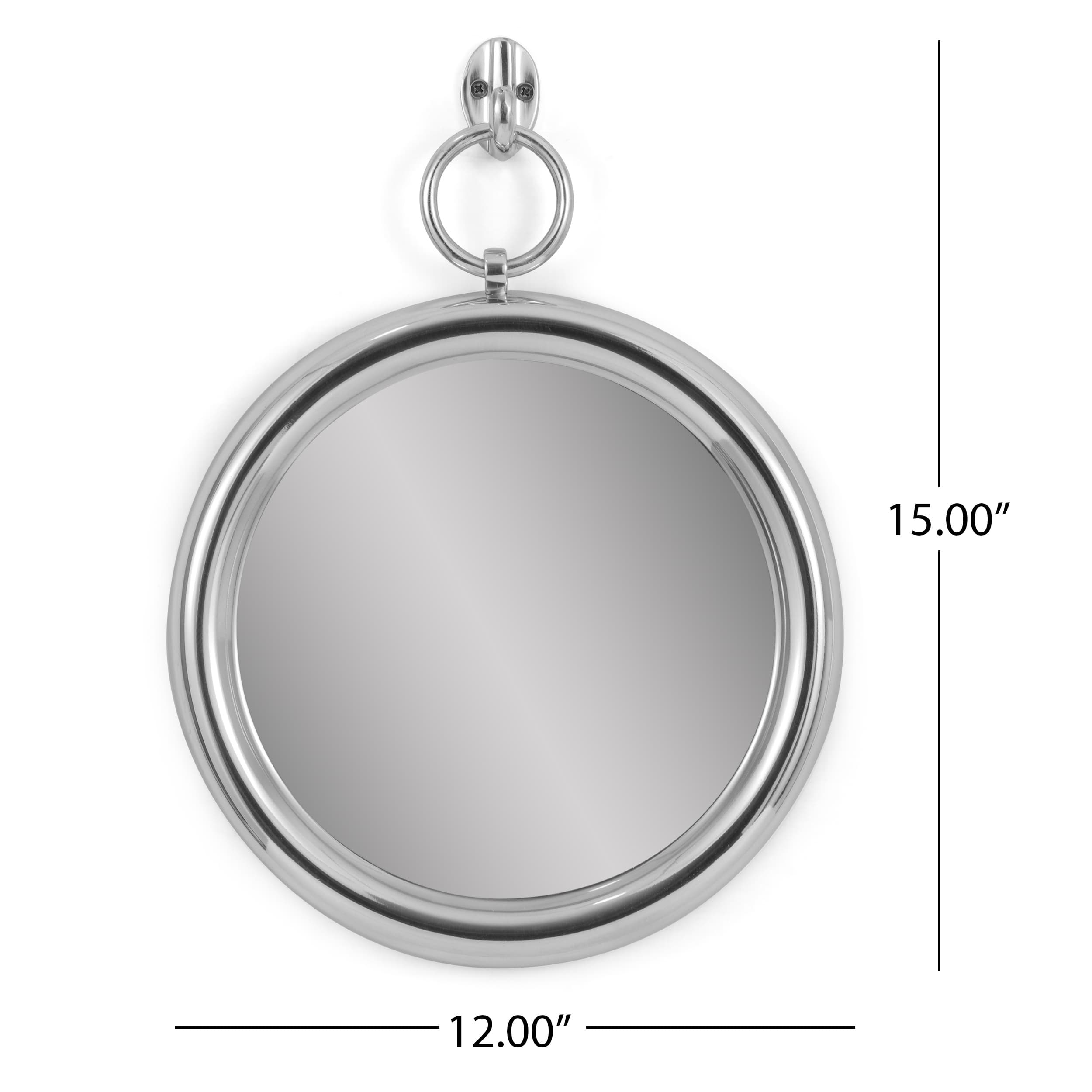Modern Handcrafted Round Aluminum Wall Mirror with Polished Frame, Lightweight and Rust-Resistant, Decorative Wall Mirror, 12"x15", Silver | Aosom.com