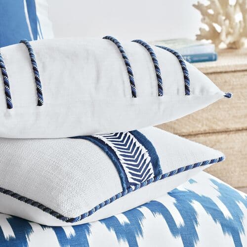 Marina Cord Stripe Lumbar Pillow - White/Blue | Cushion, Bolster