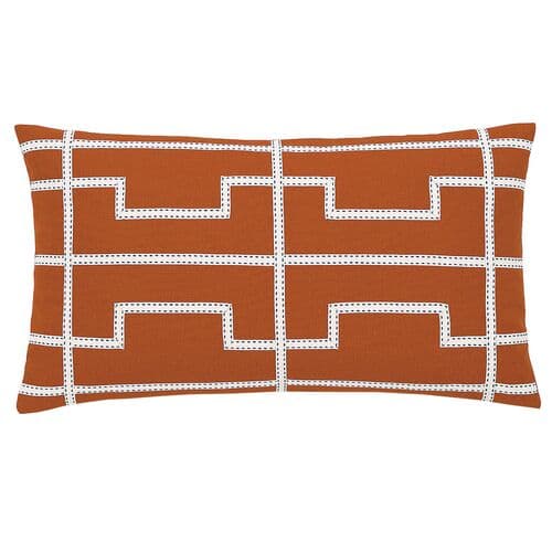 Wave Greek Key Top-Stitched Lumbar Pillow - Orange/White | Cushion, Bolster