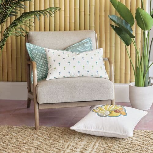 Calypso Birdseye Pattern Flange Lumbar Pillow - Aqua | Cushion, Bolster - Blue - Invisible Zipper