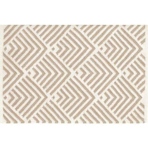 Made from UV-treated recycled plastic, this handwoven rug features a navy and ivory graphic design, offering a contemporary style to any indoor or outdoor area. A rug pad is recommended to prolong its lifespan and to keep it in place.