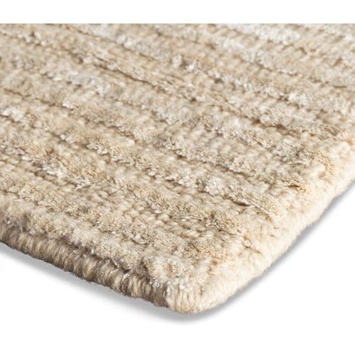 Hand-knotted with a mix of soft viscose and wool, this rug showcases a classic stripe design and a high-low pile for added texture. A rug pad is suggested to prolong its life and ensure it stays in place.