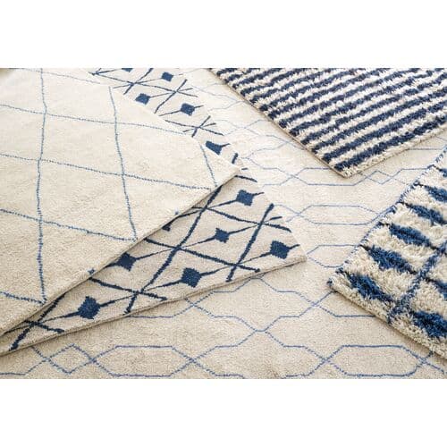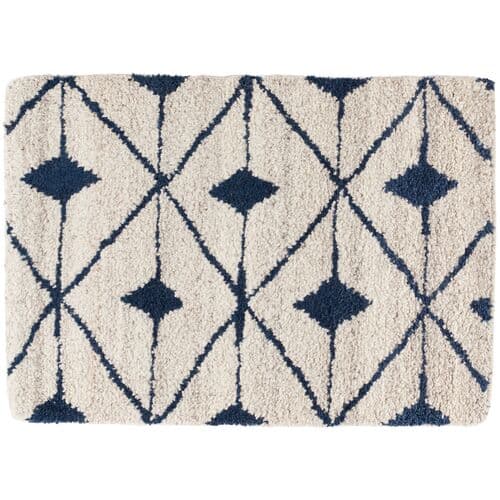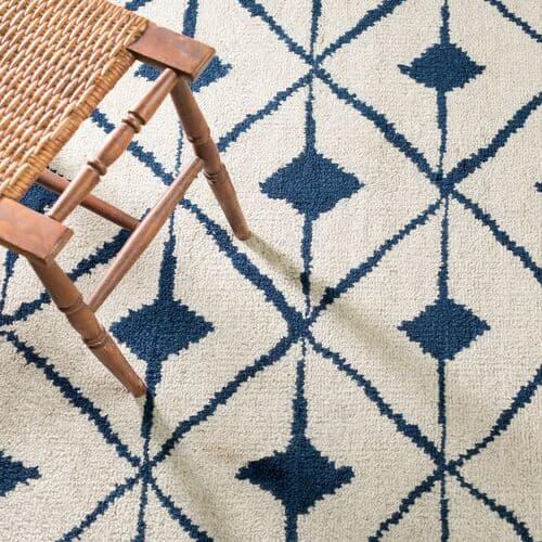 Hand-knotted wool-blend rug features a graphic diamond design and cozy pile, adding bold pattern and texture to any space. A rug pad is recommended to extend its life and ensure stability.