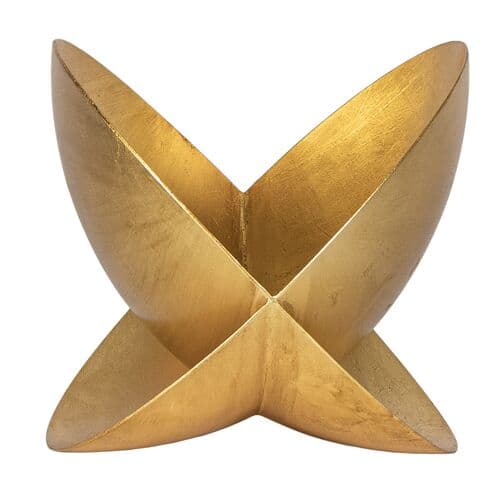 Jaden Objet showcases two intersecting shallow domes with a sculptural midcentury appeal. Ideal for placement on a desk, console, or open shelves.