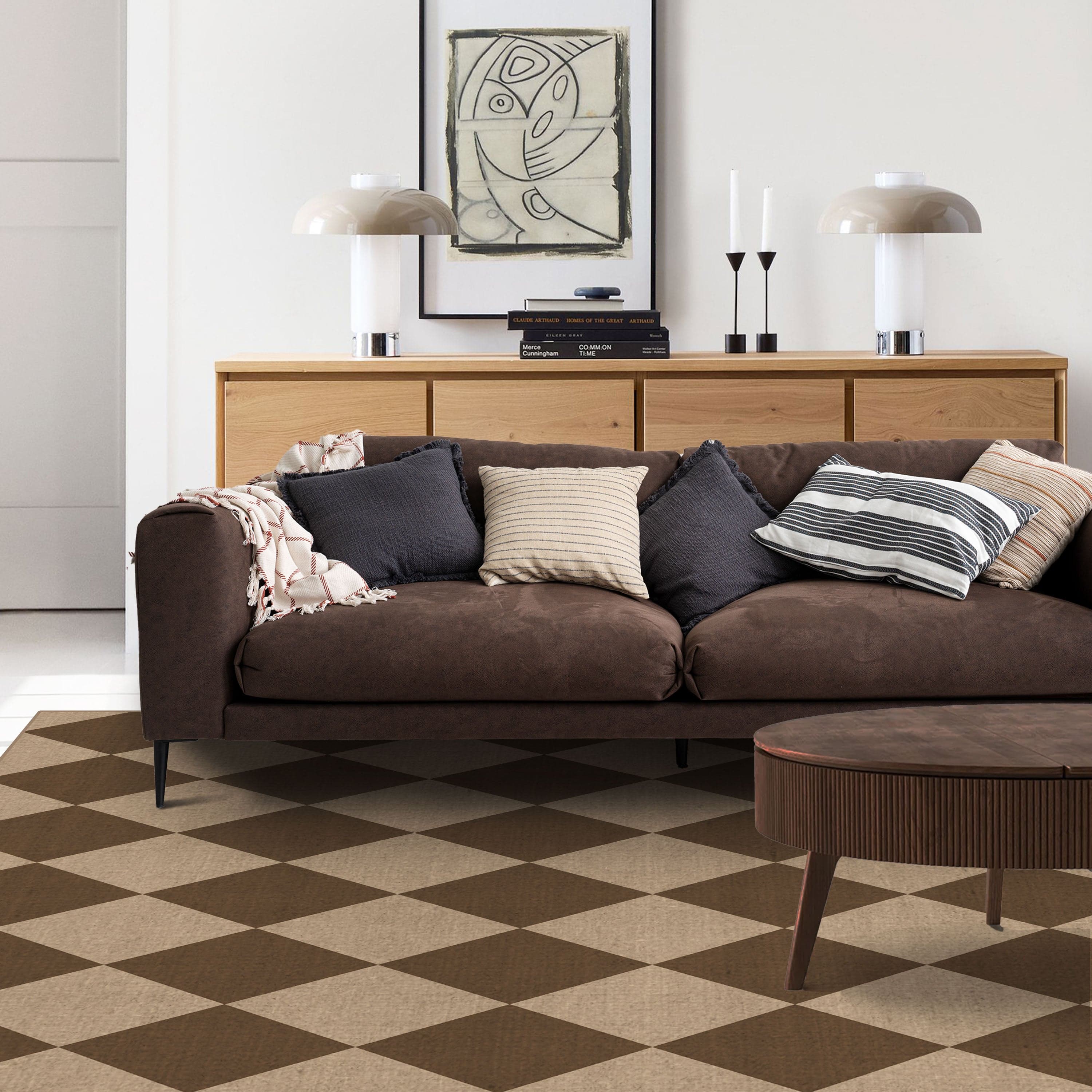 Slashop Easy Clean Rug Vintage Mosaic Pet Friendly Living Room Rug - Espresso Taupe