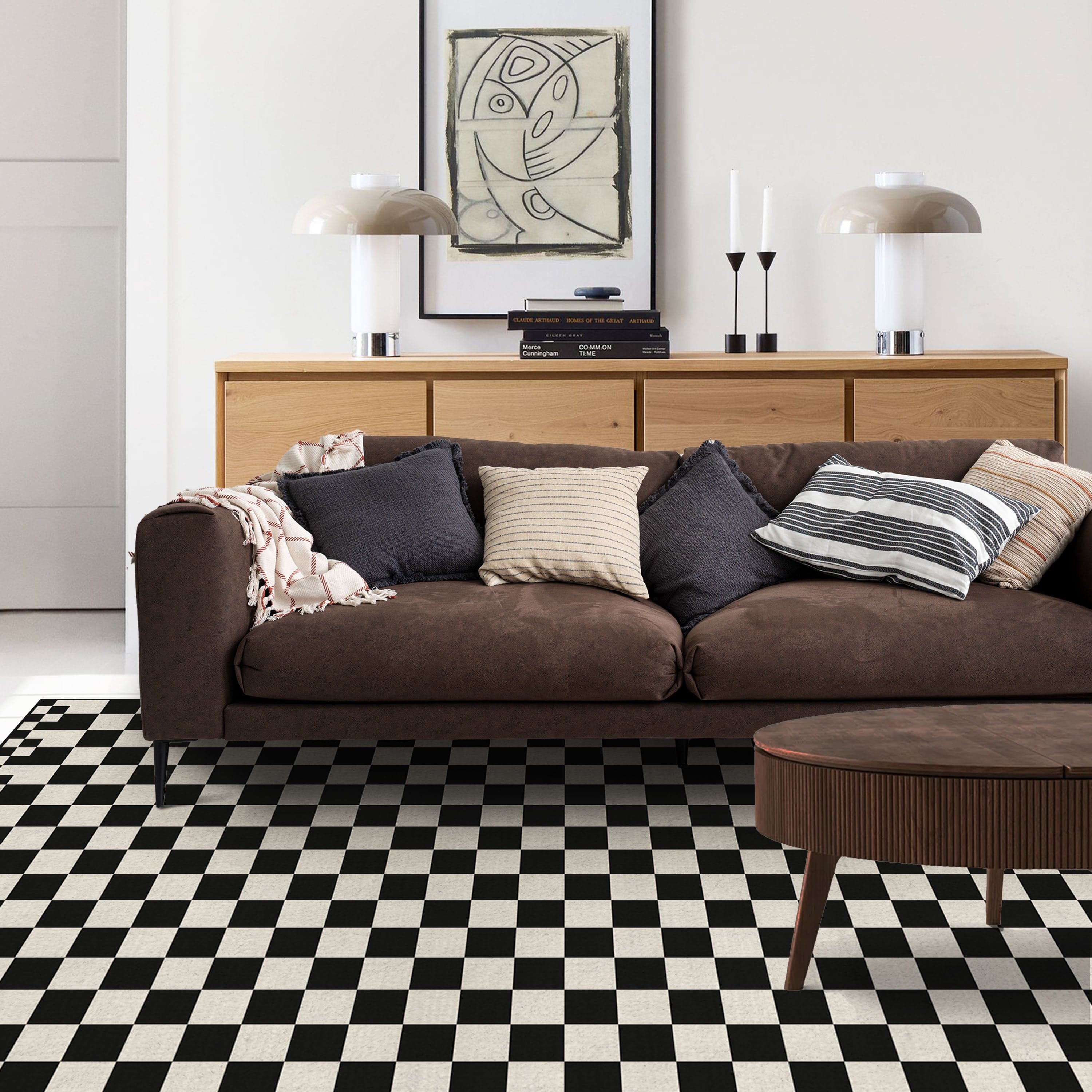 Slashop Easy Clean Rug Vintage Checkerboard Spillproof Pet Friendly Living Room Rug - Vintage Black