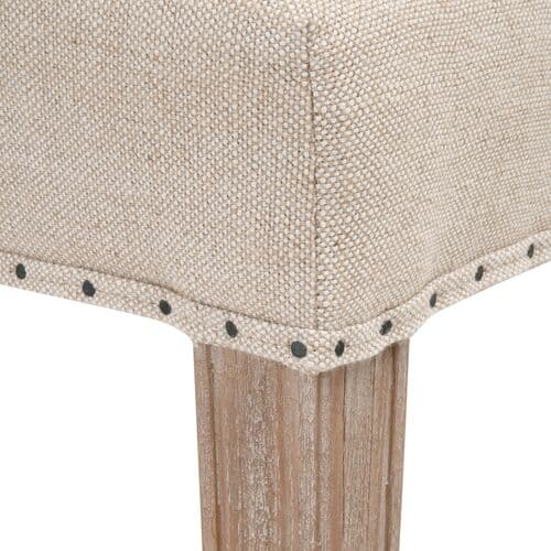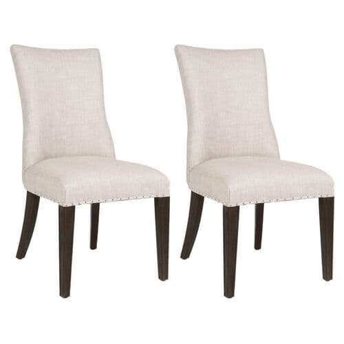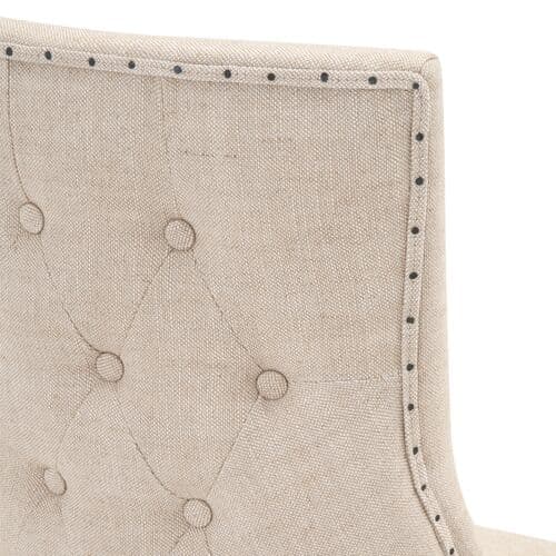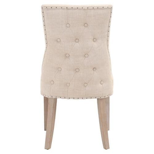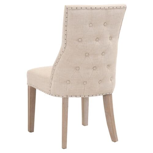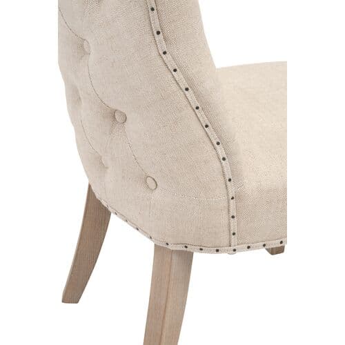 These two dining chairs feature button-tufting and nailhead trim with linen-blend upholstery, offering elegance from every view. The generous filling ensures comfort, while the frames, made from ash wood, provide lasting strength typical of materials used for baseball bats.