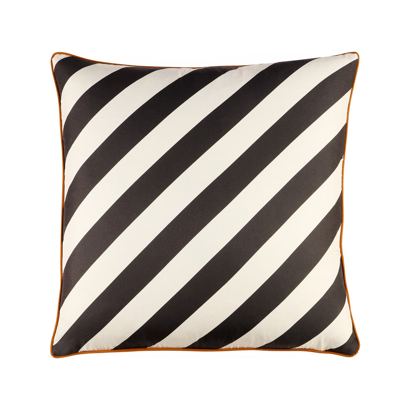 Classic and simple, this striped pillow is printed on luxurious silk, providing a preppy touch to any décor. While chic and elegant on their own, they can be paired with others for a striking striped arrangement.