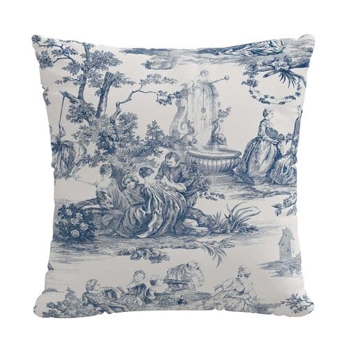 Exclusive to One Kings Lane, this cotton pillow enhances sofas or chairs with intricate toile prints reminiscent of French landscapes. Reversible design with print on each side, complete with an insert.