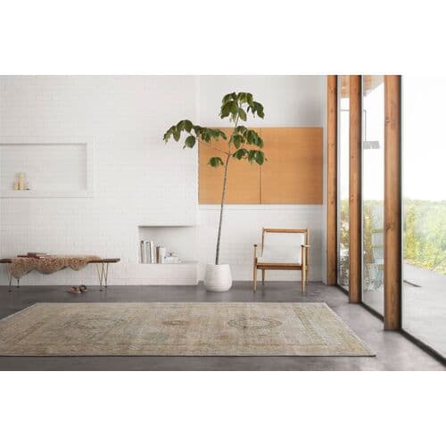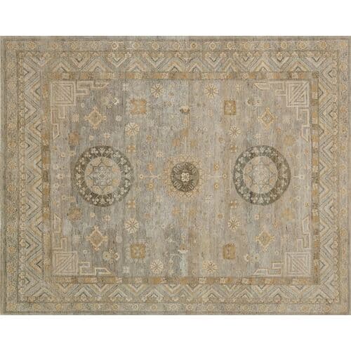 Hand-knotted of wool, this rug pairs an elegant traditional design with a deliberately distressed, sheared pile to give it the look of a prized antique. We recommend a rug pad to extend the life of your rug and keep it securely in place.