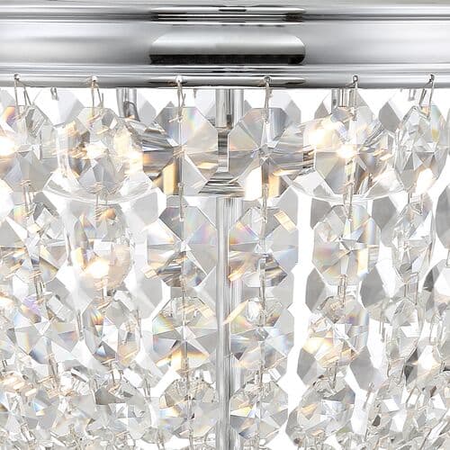 The Nola is a modern take on the traditional crystal basket ceiling mount. This beloved classic style comes in various sizes and finishes to enhance any décor. Its clean-lined frame and draping crystal body will add classic sophistication to any home.