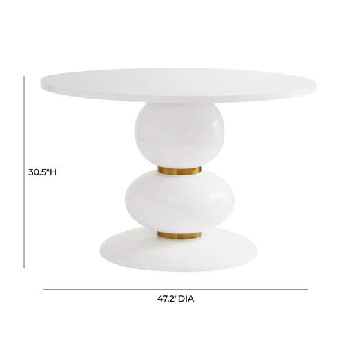 Add a sculptural touch to your dining experience with the Lexi dining table, a modern and urban take on the French pedestal-style table. This table’s whimsical nature is balanced by sophisticated gold band accents. This is truly a statement piece.