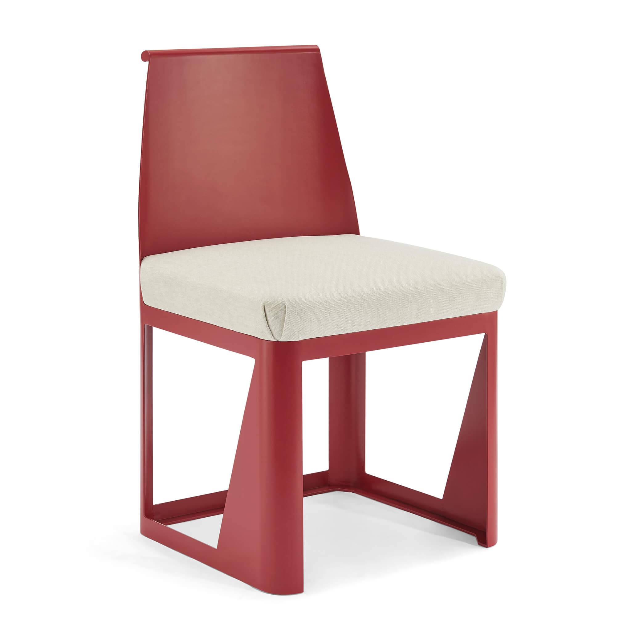 René Prou Folded Sheet Steel Metal Side Chair-Cream Seat / Oxide Red Frame
