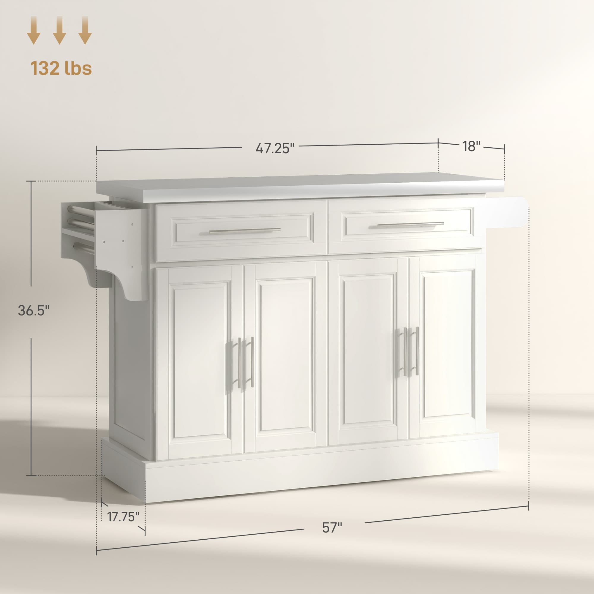 Add elegance and extra storage to your home with this cart with wheels for kitchen from HOMCOM. It features a stainless steel top for extreme stability. The drawers and cabinets with interior 3-level adjustable shelves can be used as a pantry to store dishes, basins, pans, etc. A spice rack, towel rack, knife rack, and stainless steel handle on both sides of the kitchen island on wheels offer even more convenience and an effortless way to transport it. Make your house a home with HOMCOM.