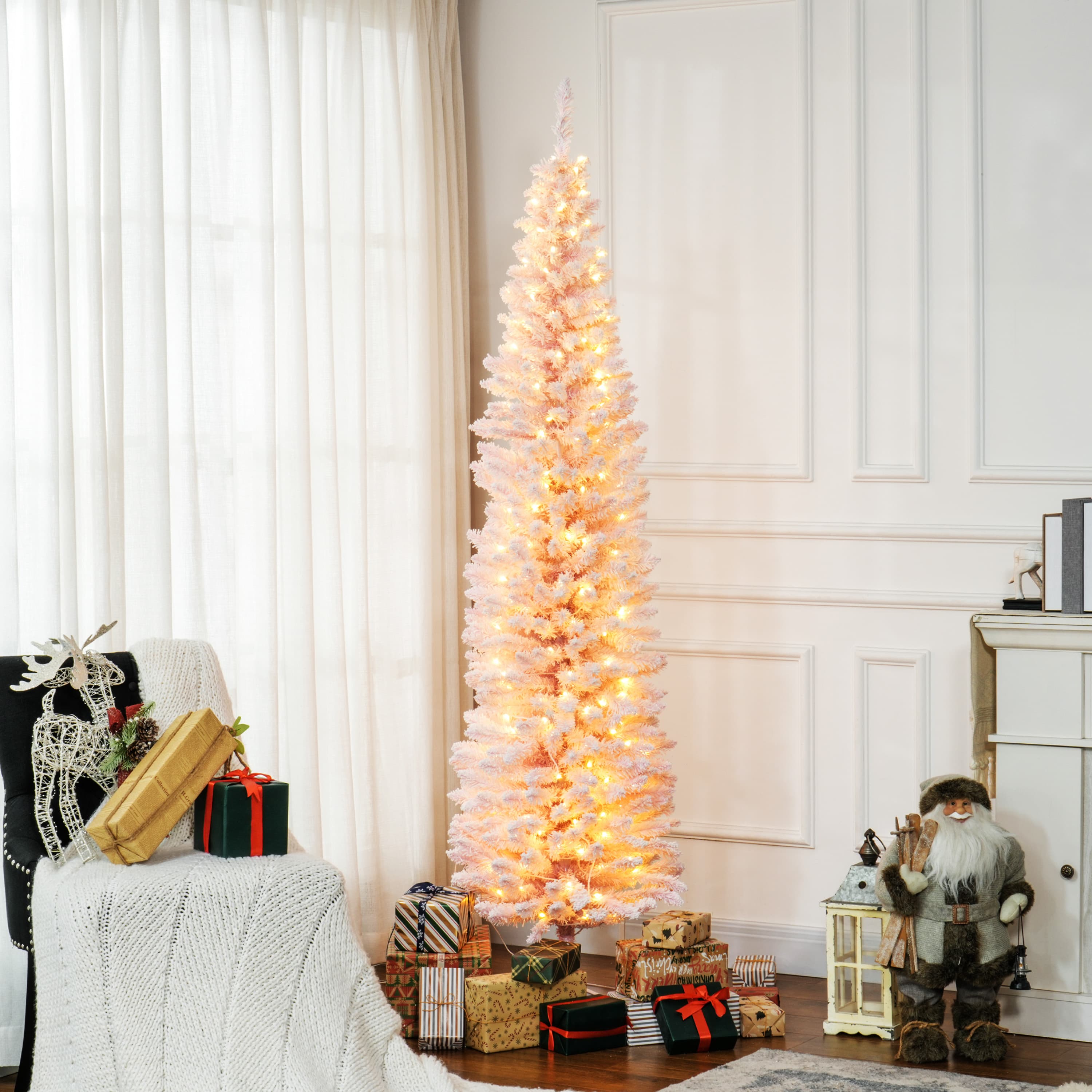 HOMCOM 7ft Pencil Christmas Tree, Slim PreLit Christmas Tree with Realistic Branches and Warm White LED Lights, Pink | Aosom.com
