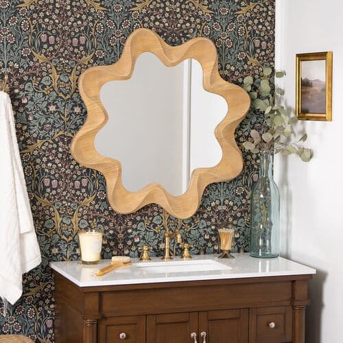 Blossom Wood Wall Mirror - Natural | Dressing Mirror, Vanity Mirror - Brown - Functional, Aesthetic