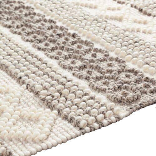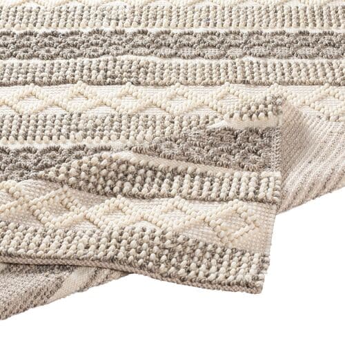 A neutral palette and high-low geometric patterns allow this rug to add subtle style to any room. Made from wool and cotton, it has a welcoming feel. A rug pad is recommended to avoid slipping and prolong the rug's lifespan.