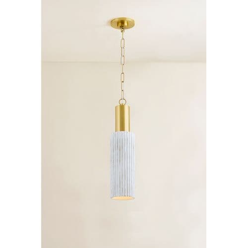 Corissa 20.5" Pendant - Aged Brass/ Ceramic Whitewash Bisque | Hanging Light, Lanterns - Practical, Aesthetic