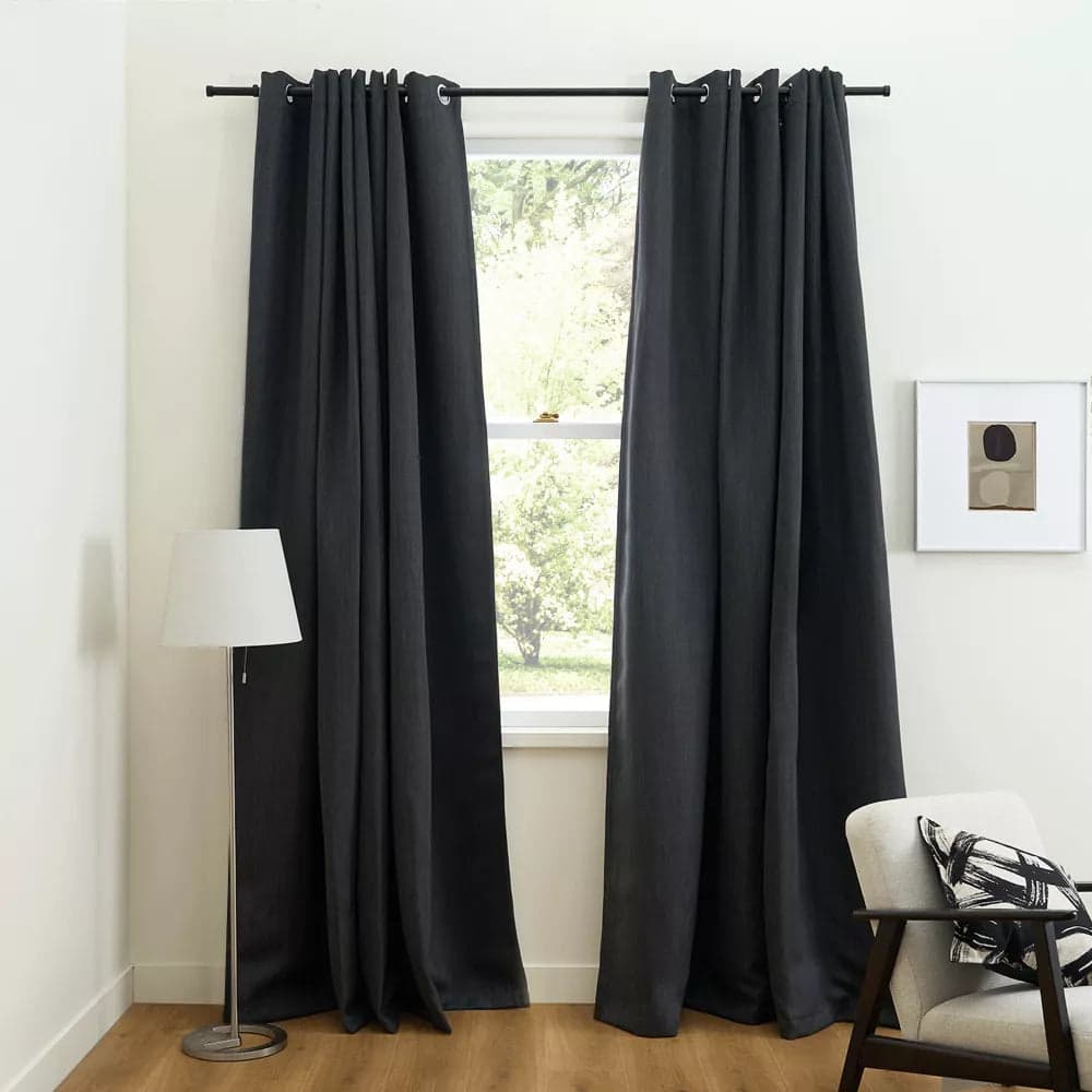 Slashop Vintage Faux Linen Polyester Blackout Scratch-Resistant Window Curtain - Heather Slate