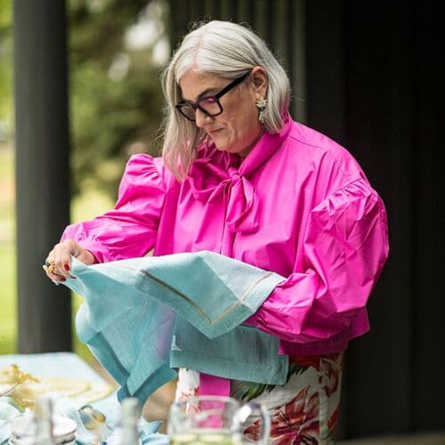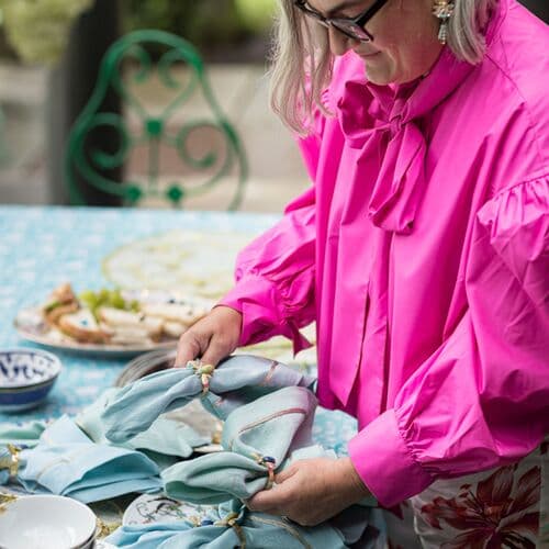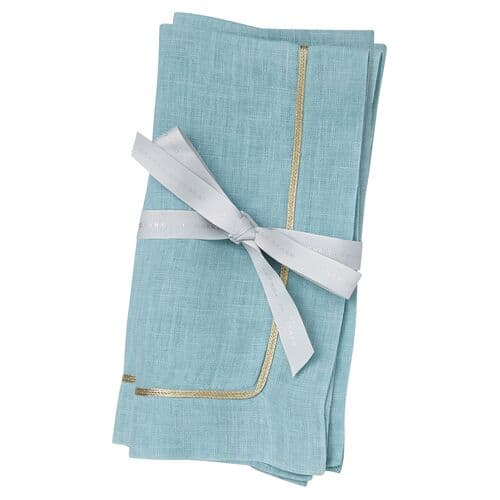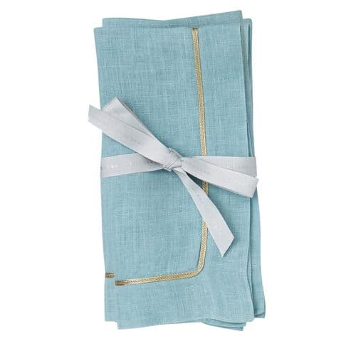 Set of 2 Gold Trim Dinner Napkins - Blue - Joanna Buchanan