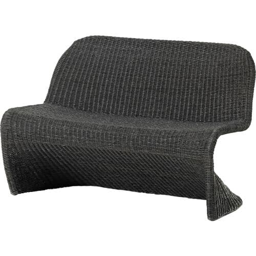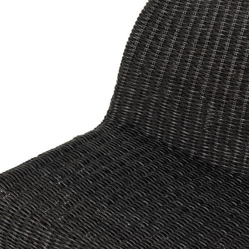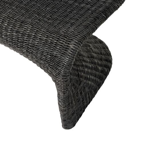 Based off a vintage shape, all-weather wicker seating brings dramatic curves to this statement-making dining bench.