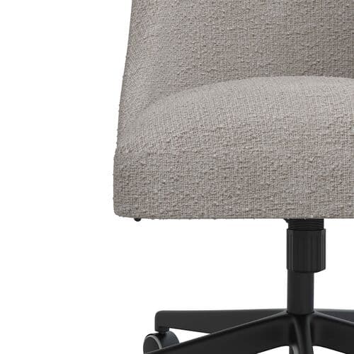 Upholstered in soft bouclé-like fabric, this desk chair is made in the USA and includes an adjustable swivel base plus casters for easy movement. Thick cushions provide comfort throughout your workday.