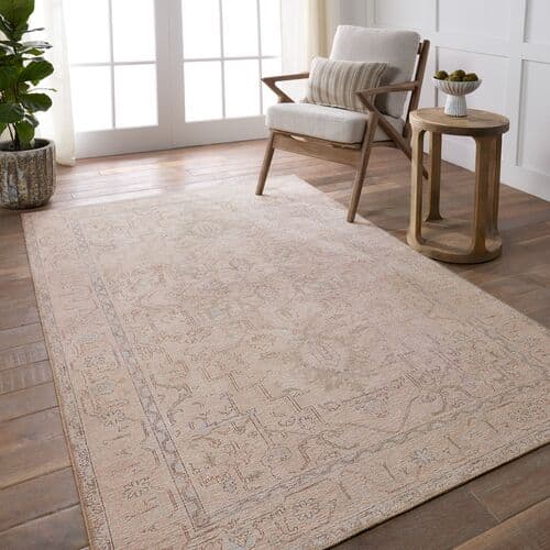 This grounding area rug boasts a classic ornate pattern in earthy tones of beige, light blue, sage, and deep brown. Printed on soft polyester, for a low-pile, durable finish, this boho-chic rug brings vibrancy and vintage vibes to any space.