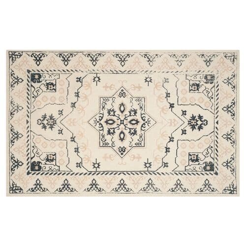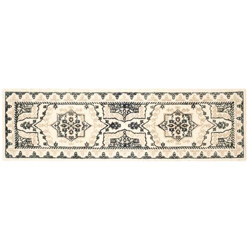 This sophisticated wool rug features a traditional medallion design in an ivory-and-charcoal palette. We recommend a rug pad to extend the life of the rug and keep it securely in place.